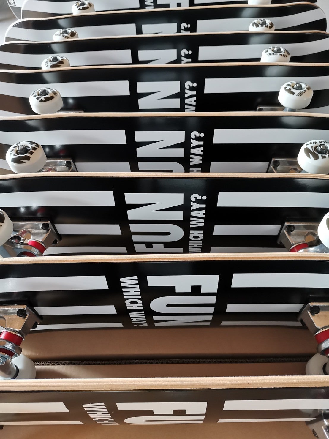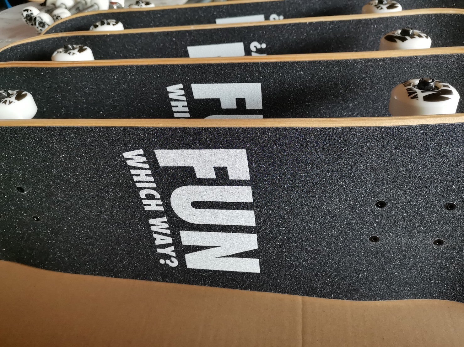 デッキテープ、ウィール、トラックにFUNのロゴが入ります。既に支援いただいた方には、直接メッセージで連絡済です。