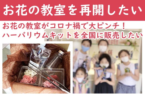 この間の収入減による危機を乗り越えるため、教室で本来使用する予定であった、花材 、オイル、瓶、資材をセットにした「手作りハーバリウムキット」を販売しその資金で教室再開に向けて邁進していきたいと思います。