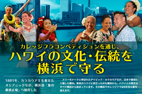 その横浜で続けていきたいイベントがあります。それが「カレッジフラコンペティション」です。2012年以来、「アロハヨコハマ」のサテライトイベントとして、大さん橋ホールで続けてきたイベントですが、今年は「アロハヨコハマ」の大桟橋ホールでの開催がなく、開催が危ぶまれました。ゆかりのある横浜で続けていきたい意思はありましたが、なかなか会場が見つからない。