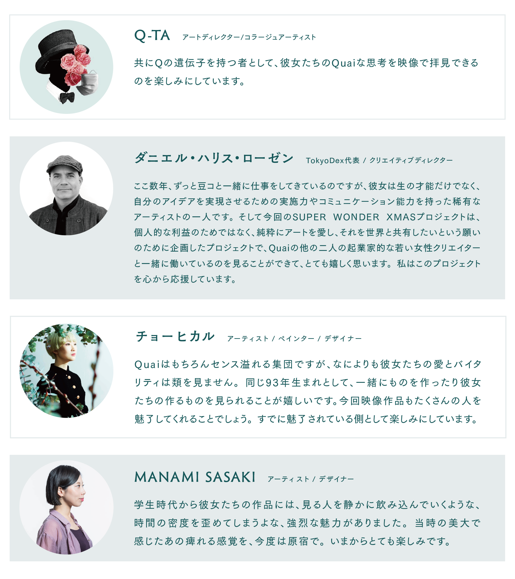 いただいたご支援やお言葉を励みに、Quaiのクリエイティブを通して、皆様に恩返しが出来るよう精進してまいります。これからもどうぞよろしくお願いいたします。