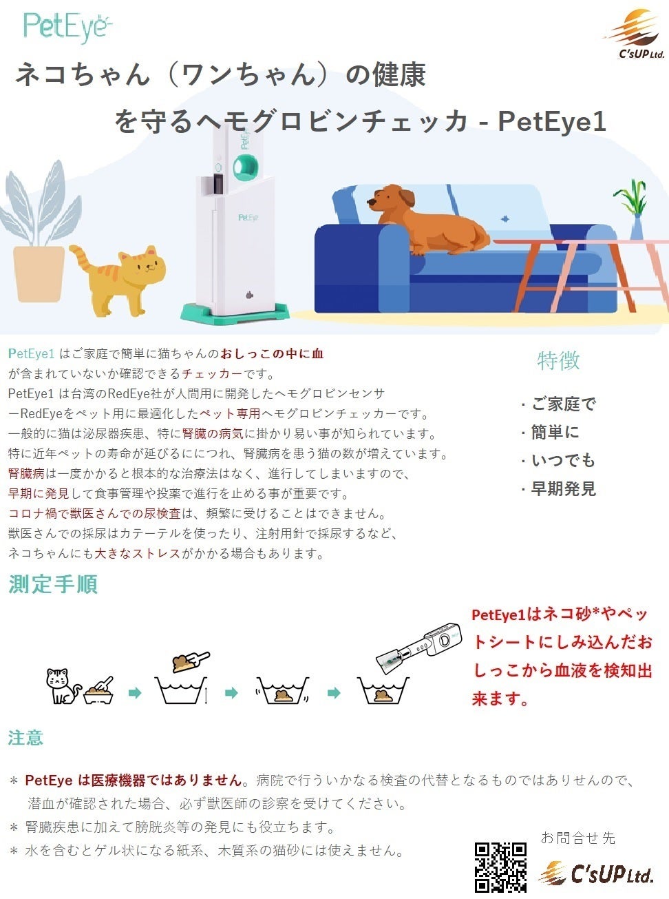 *PetEye1は医療機器ではありません。病院で行う検査の代替となるものではありせんので、PetEye1で潜血が確認された場合、必ず獣医師の診察を受けてください。