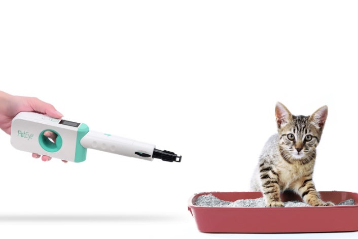 PetEye1(ペットアイ1)はRedEye1と同様の血液の吸収スペクトルを分光光度計で検知する技術をペット用に最適化し、ネコちゃんのおしっこに血が混じっていないかを検出します。