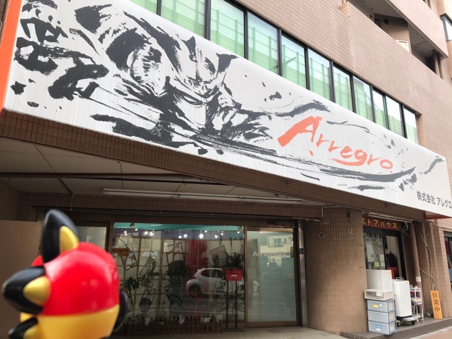 アレグロさんにて、きぶなかま名刺を張り切って渡す宣伝部長のキブナドン