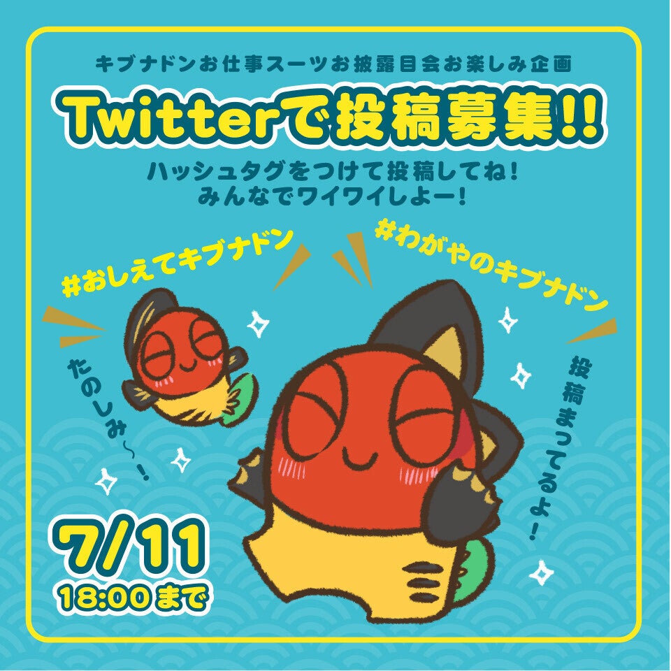 お披露目会に向けて、「宇都宮キブナドンプロジェクト」や「キブナドン」への質問、皆様のおうちのキブナドン(ソフビ)のお写真を当日7/11(日)の18:00までTwitterでの投稿を募集いたします!今回直接お会いすることはできませんが、みなさんとオンラインならではの楽しい交流ができれば嬉しいです!是非本日からご投稿下さい♪