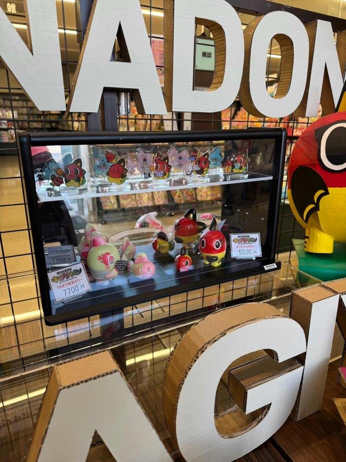 元気いっぱいにてくてくしています。すごーい!コラボソフビや新作アクリルガチャのディスプレイ♪