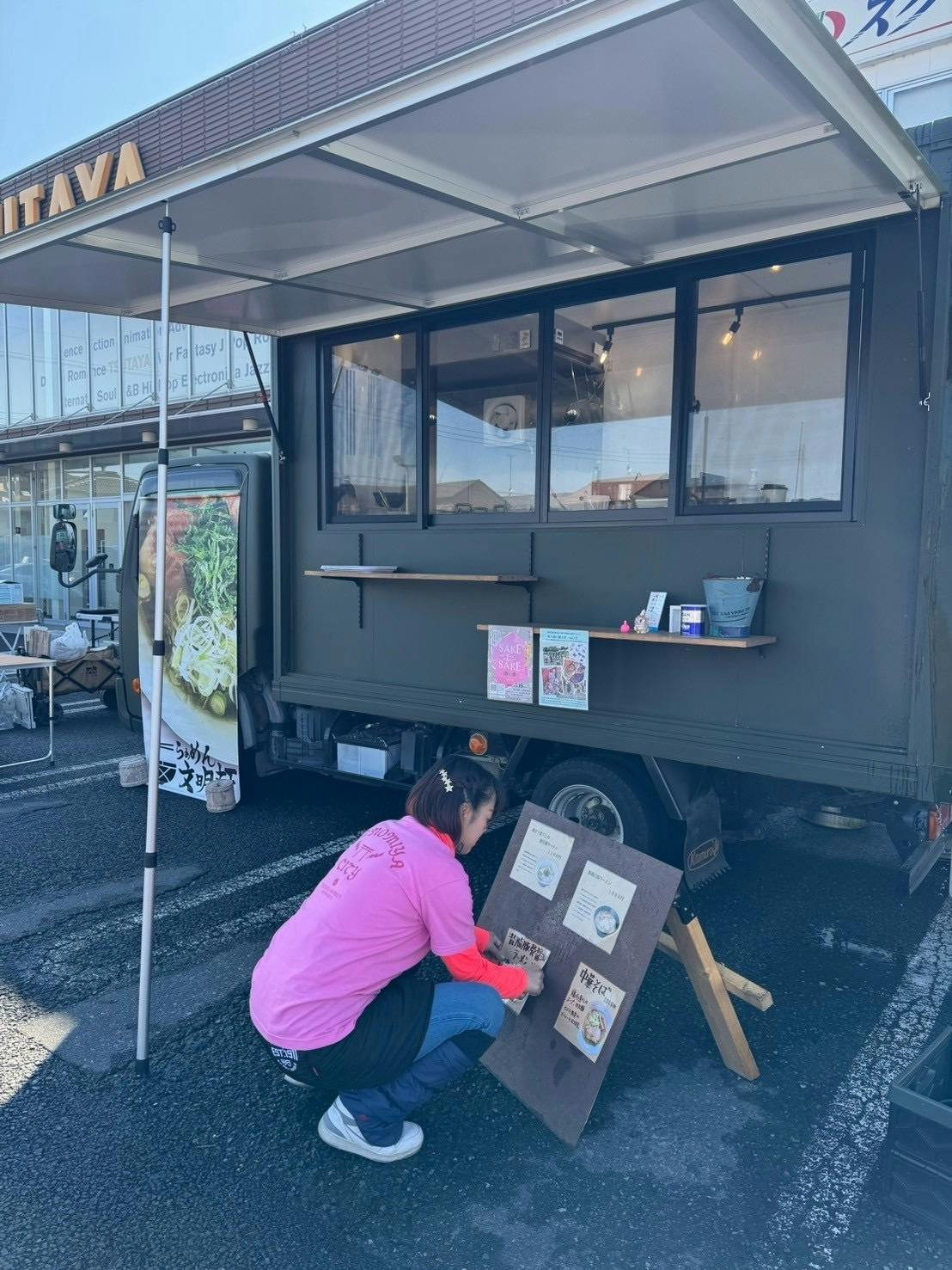 外では朝早くから、メンバーのえりこママが「きぶなかマルシェ」の準備を♪