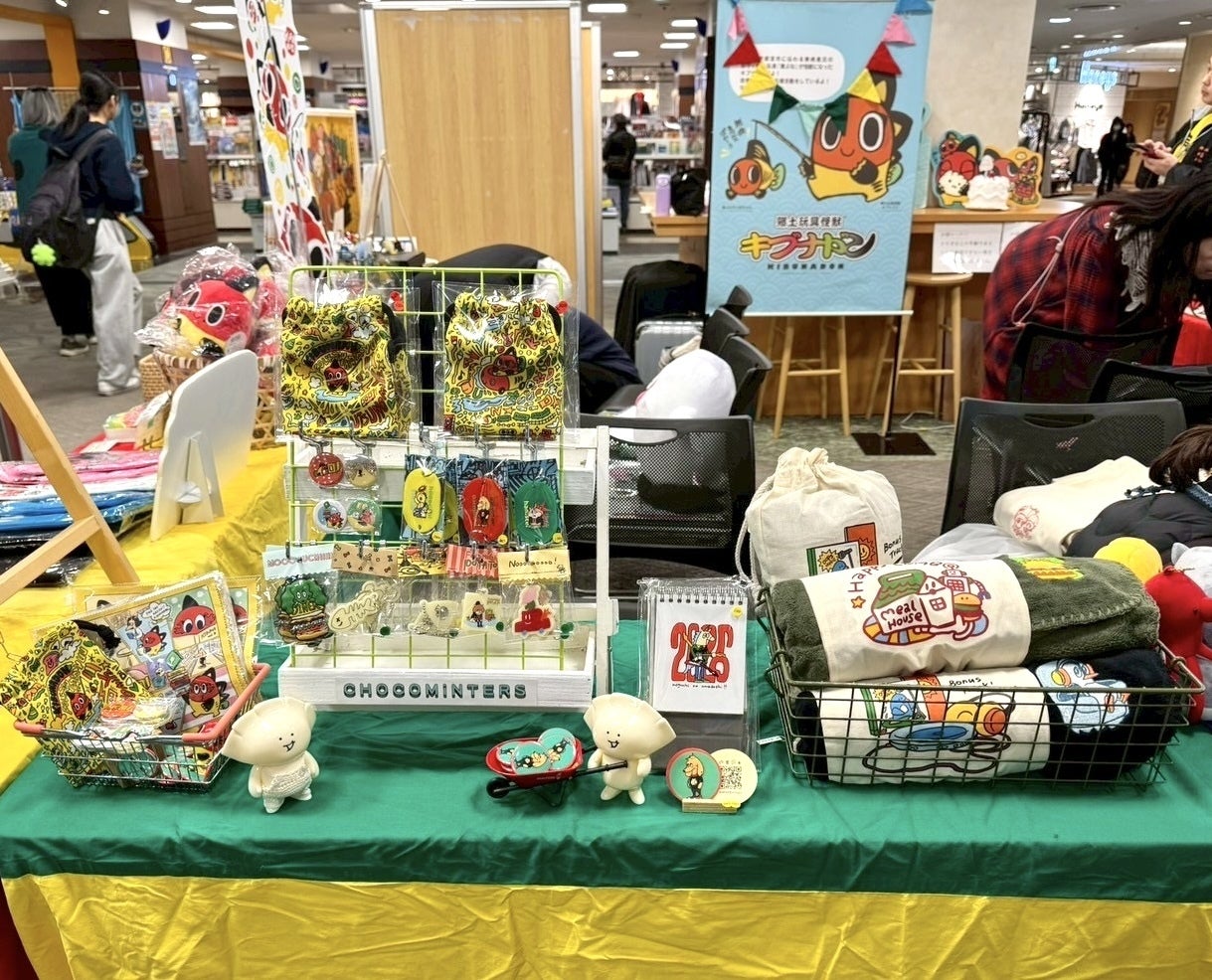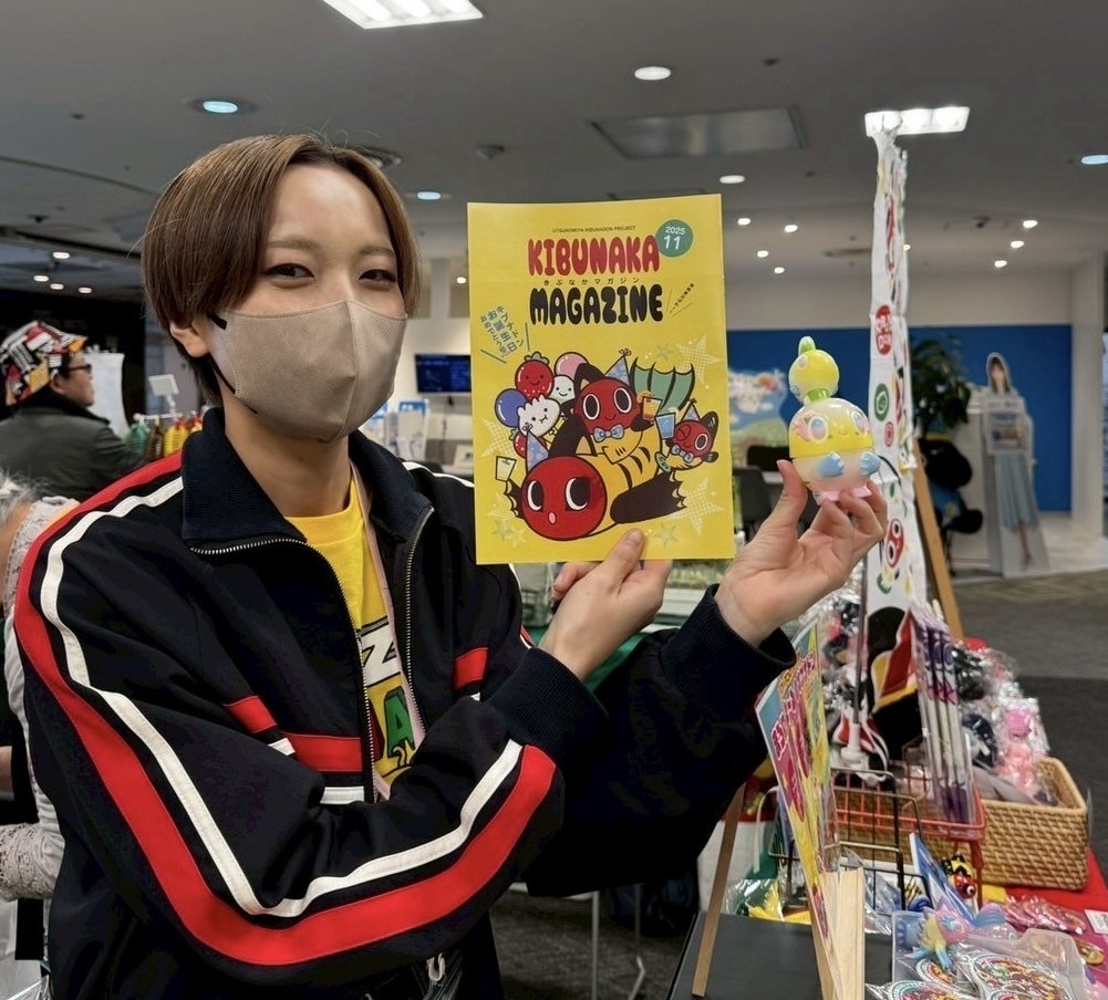 当日、グッズお買い上げのお客様にお渡しした、UKP活動報告冊子の2025年版の「きぶなかマガジン」を持っているのは、デザインもサポートいただいたコラボ作家・のぐちさん♪キブナドン、ぱわーいっぱいのバースデー出動!