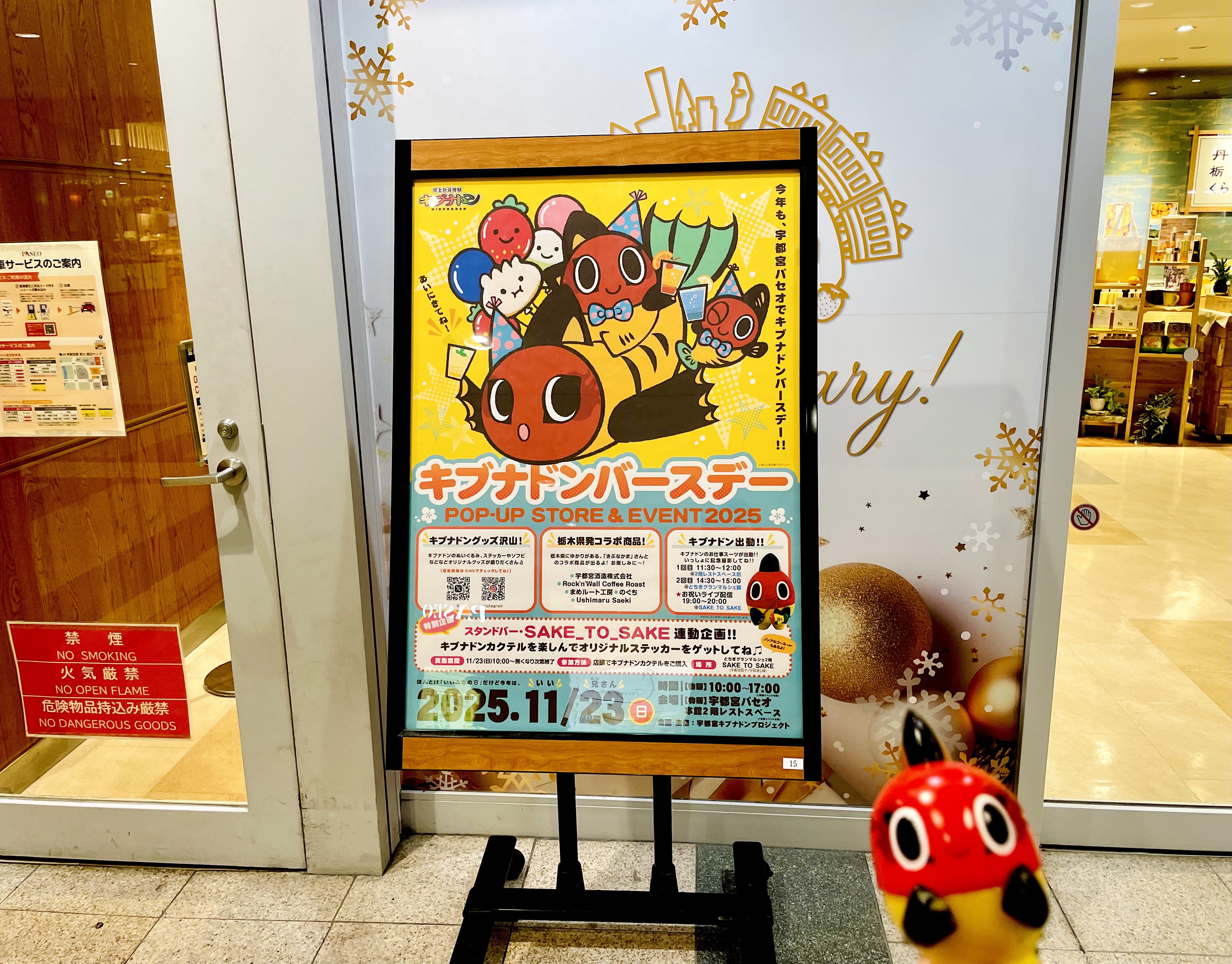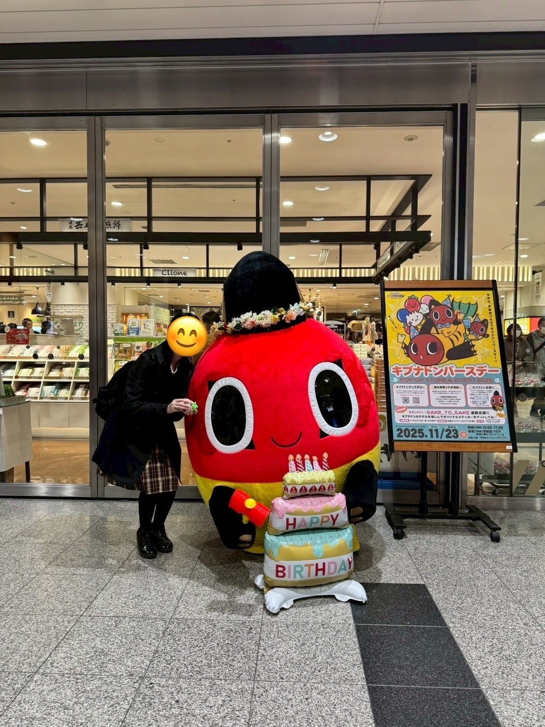 2回目のグリーティングは、宇都宮パセオ グランマルシェの外側に初出動!こちらでも沢山のお客様にお祝いいただき、キブナドン大喜び!