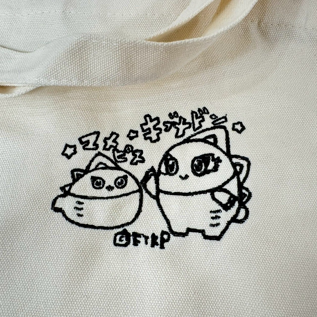 まめルート工房 × キブナドン コラボエコバッグの可愛い刺繍柄♪ まめたさんが、まめぴすとキブナドンをイラスト化してくださいました☆