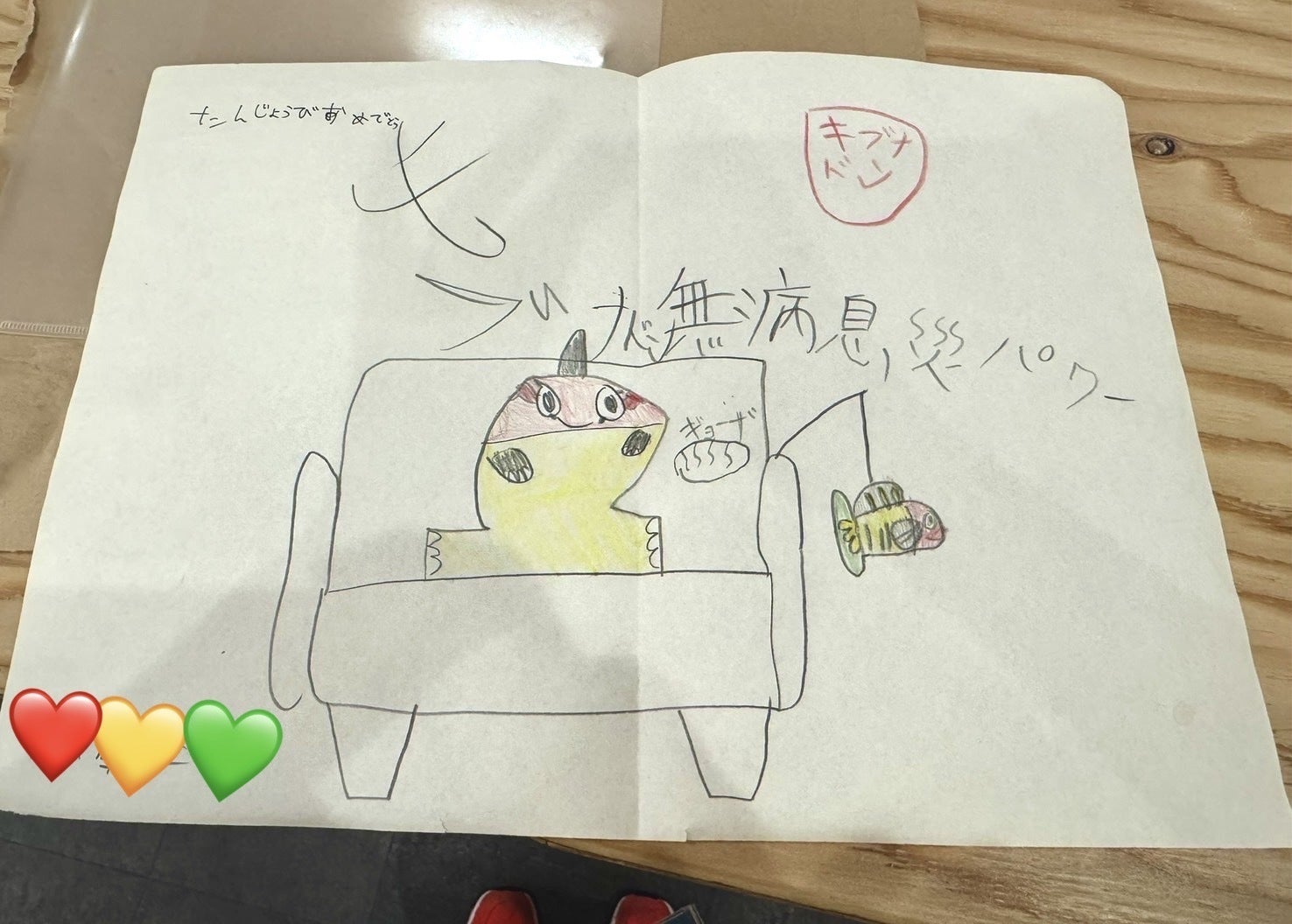 小さなきぶなかまさんから、キブナドンのお誕生日アートをいただきました!