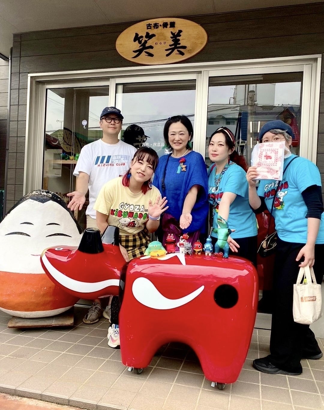 こんにちは☆黄ぶなが大好き”きぶなかま”お知らせ担当です!福島県・猪苗代町&会津若松市研修の旅。猪苗代町でのお話を綴った前回に続き、後編では赤べこの故郷・会津若松市に伺った模様をお届けいたします♪トップの写真は、福島の郷土玩具「赤べこ」をはじめ乙幡さんの「神獣ケルベコス」の張子を製造されている荒井工芸所さんの民芸品店「笑美(わらび)」さんの店頭での記念写真です⭐︎ 猪苗代でもお世話になった「日本きっかけデパート」の國分さんもご一緒です♪鶴ヶ城のある会津若松市の真ん中にある「笑美」さんへ到着♪入店してすぐ、赤べこのカプセルトイが♪乙幡さんが手掛ける”神獣ベコたち”もたくさん!そして本場の赤べこ!笑美さんには様々な色のべこが揃っていました♪画像左下には乙幡さんのサインと張り子ver.のケルベコスが!!…張り子のケルベコスコーナー!迫力があります!こちらには第2弾の真ケルベコス張り子が!背中の火炎模様がとっても格好良いですね⭐︎手作りのため、店頭とネットショップどちらもお買い上げはお一人様一個限定の作品(商品)なのだそうです…!郷土玩具怪獣の仲間たちも、張り子のケルベコスにご挨拶♪笑美さんの店内にある中で一番歴史が深い赤べこも見せていただきました!大昔の赤べこに会えて、感動…。お土産用の袋も赤べこがたくさんで可愛い♪笑美さんで赤べこの歴史や乙幡さんのコラボ作品について伺い、福島で郷土玩具がどの様に人々に受け継がれ発展しているのかを直に感じる事ができました。とても勉強になりました!笑美さん、乙幡さん、国分さん、大変お世話になりました!先に帰られる乙幡さんをお見送りした会津若松駅の東口。とっても大きな赤べこがいましたよ!記念撮影スポットとしても有名だそうで、備え付け赤いボタンを押すと、頭を揺らしながら「あかべぇ」がトーク&赤べこ音頭を歌ってくれます♪レンタサイクルのポスターにも赤べこが…!お土産屋さんを待つ足元のご案内にも赤べこが…!駅や街中だけでなく、高速道路のSAや個人商店さん、バスや標識、看板など、福島県内には赤べこがたくさん!宇都宮の黄ぶなもこんな風に、楽しく見かける機会が更に増えたら嬉しいな〜とお知らせ担当は思いました!鶴ヶ城近くの「七日町通り」でも乙幡さんの”神獣ベコたち”のカプセルトイを発見したえりこママ。駅だけでなく様々なお店さんで見かけしましたよ!素晴らしすぎる〜!私たちUKPは、帰路へ着く前に福島名物のソースカツ丼を求め、「お食事処まり」さんへ。ソースカツ丼だけでなく、喜多方ラーメンもつくセットで欲張りにキメ!「まりちゃん」特製のオリジナル塩唐辛子が付いていたのですが、それが丼にもラーメンにも合いまして!そのままでも美味しいのに更に楽しく味わえました♪まりちゃん、ご馳走様でした♪この度は素敵なご縁をいただき、充実した県外研修ができました。福島県2つの市に伺いましたが、郷土玩具にまつわる地域や人とのつながりや、郷土愛溢れる地域に根ざした素晴らしい御活動とその発展を実際に見て聞いて、私たちUKPも今後どのように地元から応援発信をしていけるのか、改めて前向きに考える事ができる機会となりました。今回感じたワクワクドキドキな刺激と体験を、きぶなかまの皆様にもお届けできる様、キブナドンと一緒に形にしていけたらと思います。この旅でお世話になった皆様、本当にありがとうございました!またご一緒できます様に♪さて!きぶなかまの皆様へお送りする、UKP夏の活動報告は他にもございます!次回の活動報告も、是非チェックしてくださいね♪~カプセルトイ「VAG郷土玩具怪獣キブナドン第二弾」元気に稼働中!~<取扱店>・がちゃ処online★栃木県宇都宮市内★・宇都宮酒造・栃木県立博物館・Natural works village(kitchen hoshinowa営業中のみ)・TOCHIGI MARKET(ウツノミヤテラス店)・ヨドバシカメラ マルチメディア宇都宮・うさぎや宇都宮駅東店※順不同、各店舗様の定休日や在庫状況など、事前にご確認の上、足をお運びください♪問合せ先/http://www.prestage.co.jp/ーーーーーーーーーーーーーーーーーーーーーーーーーーーーーーーーーーーーーーーーー↓キブナドンの最新情報は各SNSでご覧頂けます↓(宇都宮の情報発信で応援! #宮てく もSNSから発信中です!)X(旧Twitter)FacebookInstagram