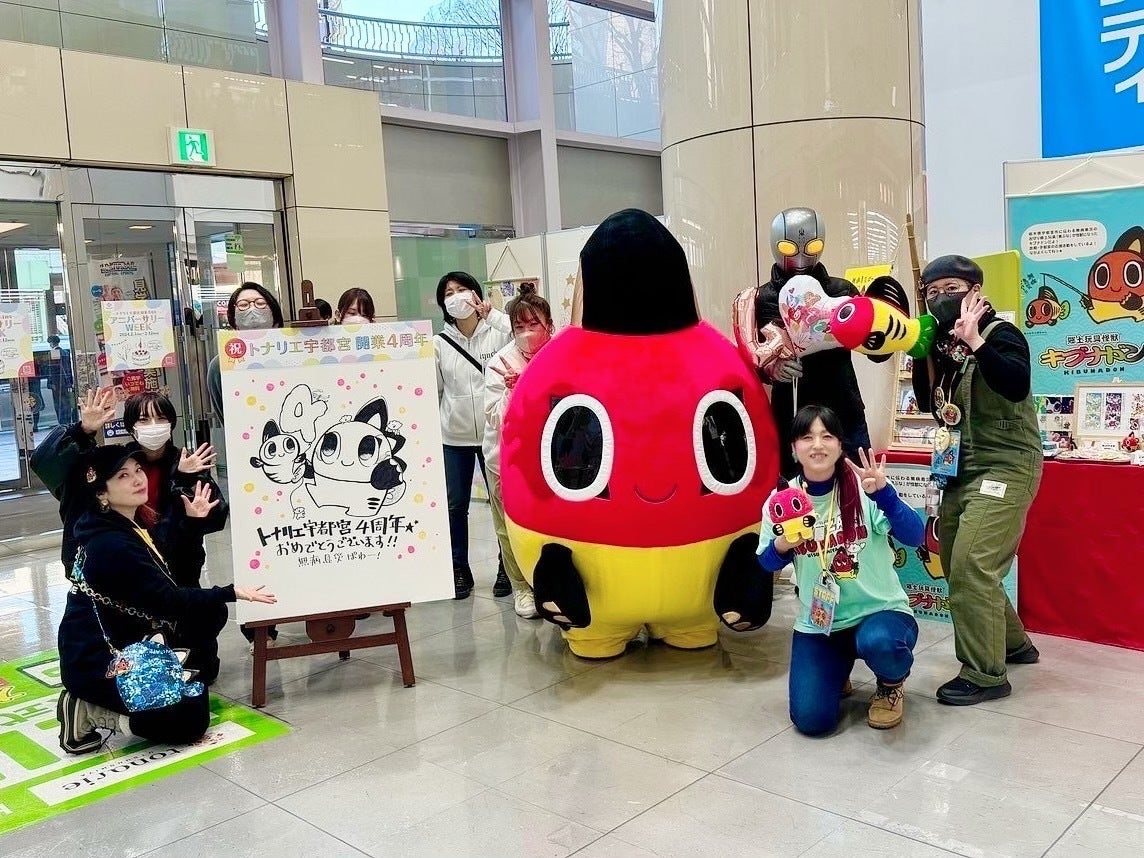 こんにちは☆黄ぶなが大好き”きぶなかま”お知らせ担当です!先日は関東に雪が降りましたね〜!キブナドンは、雪遊びをしたり、動物の足跡を見つけたりしていた様子をSNSにアップしていましたね♪そんな栃木が雪景色になる前日、2月4日にキブナドンの実家「田川」のすぐ近く!トナリエ宇都宮さんへ4周年のお祝い出店&出動をさせていただきました!当日会場にお越しくださったきぶなかまさんが、ワークショップやキブナドン今年一回目のグリーティングを楽しまれていて、とても嬉しかったです☆トップの画像は、トナリエ宇都宮のスタッフさん、そしてGYOZAくんのデザイナーのぐちさんと一緒に記念撮影をしたお写真です♪キブナドンがこの日の出動を終える間際、見送ってくださる皆様の笑顔がとっても温かくて。トナリエさんでてくてくと初出動をしてから約3年、今では会場に居る赤ちゃんをあやしたり、お祝いの風船を持ったりする様になったキブナドン。成長した姿をお見せ出来ましたでしょうか?そんなワイワイほっこりとしたイベントの様子を、お写真と共に振り返らせていただきます♪グッズ販売を行なったUKPブースにて♪この日は、きぶなかまTシャツのデザインも担当くださっている、GYOZAくんのデザイナーのぐちさんがスペシャルゲストとして登場⭐︎のぐちさんのオリジナルグッズも登場!ステッカーや箸置きが大人気でした♪この日初めて開催させていただいた「オリジナルうおちゃん作り」が大人気でした♪お子様が一生懸命カスタムされる様子をキブナドンが見守っています。大人の皆様も、真剣にワークショップをされる様子がこの背中から伝わります・・・!完成した皆様の「#カスタムうおちゃん」がこちら!どのうおちゃんも、表現やアイディアが素敵ですね♪お知らせ担当は、大変ありがたい事に以前からキブナドンとうおちゃんのカスタムをさせていただく機会をいただいておりますが、いつかきぶなかまさんと一緒に楽しくカスタムが出来たら良いな〜と思っていたので、このワークショップはより一層胸が熱くなりました…!キブナドン、2024年初出動!「ぬいてく」を持つ姿もバッチリ決まっていますね♪出動をお待ちくださっていた皆様にご挨拶♪出動をすると、記念撮影をお待ちのお客様が並んでくださっていたので、キブナドンと一緒に感動しておりました…♪なんとこの日はスペシャルゲスト!「たねマン」も登場!トナリエ宇都宮さんに登場されたのは初めてなのだとか☆出動前にスペシャルゲスト登場のアナウンスがあり、キブナドンとワクワクしながら聞きましたよ♪一緒に記念撮影をした赤ちゃんに「いないいないばぁ」をするキブナドン。赤ちゃんは楽しそうににこにこしていました♪イベント中、デザイナー照紗のライブペイントもゲリラ開催!トナリエさんへ思いを込めて♪この日出動したキブナドンたちがそのまま絵になった様ですね☆そして、のぐちさんが可愛いGYOZAくんたちを、私お知らせ担当Ushimaruも、マイキャラクター浮き足ちゃんなどをちょこっと描かせていただいたので、トナリエ宇都宮さんにお立ち寄りの際は、是非ご覧ください♪おかげさまで、2024年の初出動をハッピーに終える事ができいました♪改めまして、トナリエ宇都宮さん4周年おめでとうございます!これからもたくさんの福があります様に♪キブナドンのぱわー!いっぱいに応援しております♪さて!次回もきぶなかまさんにワクワクしていただくべく、UKPは企画を進行中でございます!今後のイベント告知をお楽しみに♪ーーーーーーーーーーーーーーーーーーーーーーーーーーーーーーーーーーーーーーーー~カプセルトイ「VAG郷土玩具怪獣キブナドン第二弾」は各取扱店様でお楽しみいただけます~<取扱店>・がちゃ処大宮・がちゃ処浅草・がちゃ処渋谷( 西武渋谷店 SUBCULTURE&ART(lab.)内)・がちゃ処原宿・がちゃ処天美・がちゃ処online・大丸京都店『副次的文化工藝専門店 KESaGaKE本店』他★栃木県宇都宮市内★・宇都宮酒造・栃木県立博物館・Natural works village(kitchen hoshinowa営業中のみ)・TOCHIGI MARKET(ウツノミヤテラス店)・ヨドバシカメラ マルチメディア宇都宮・まんだらけ宇都宮店・うさぎや宇都宮駅東店※順不同、各店舗様の定休日など、事前にご確認の上、足をお運びください♪問合せ先/http://www.prestage.co.jp/ーーーーーーーーーーーーーーーーーーーーーーーーーーーーーーーーーーーーーーーーー↓キブナドンの最新情報は各SNSでご覧頂けます↓(宇都宮の情報発信で応援! #宮てく もSNSから発信中です!)TwitterFacebookInstagram