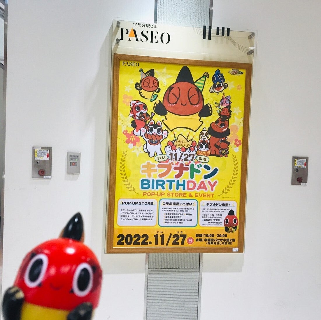 こんにちは☆黄ぶなが大好き”きぶなかま”お知らせ担当です!キブナドンの故郷・宇都宮では、いつの間にか恒例の山颪(やまおろし)がぴゅーぴゅーと吹き、寒さが厳しい季節となりました。そんな中ではありますが、先日11月27日(”いいふな”の日)はおかげさまで心をホットに!「キブナドンバースデーイベント」をキブナドンの実家(田川)すぐ近くの宇都宮PASEOさんにて、開催する事ができました!!当日会場にお越しくださったきぶなかまさん、そして配信をご覧いただいたきぶなかまさんとも、一緒にキブナドンをお祝い出来てとても幸せでした♪キブナドンも、皆様に感謝の気持ちを伝えられる様、出動を楽しく頑張っておりました。そんな様子を、お写真と共に振り返らせていただきます☆イベント開催前から宇都宮PASEOさんで掲示していただいたイベントポスター☆当日は会場前にもどーんと置いてくださいました♪きぶなかまさんにHAPPY BIRTH DAYの「たすき」をいただき、嬉しさ百倍!ノリノリで「背ビレがけ」をし、レジに立つキブナドン。宇都宮酒造さんの販売コーナーでは、当日初だしのコラボ日本酒「四季桜 特別純米酒無濾過生原酒キブナドン」はじめ、人気ラインナップ「とちぎの星」、「ARUSHIROI」などが並び、 とっても豪華に!星野工業さんとコラボさせていただいた「ぐいのみ」も日本酒と揃い、ちびてくちゃんもワクワクの様子♪この日デビューとなったUshimaru Saekiコラボカラーの「キブナドンMILKY POP Ver.」もドキドキしながらスタンバイ☆キブナドン、約1年ぶりに宇都宮PASEOさんに出動!手を振ってくれた皆様にご挨拶♪きぶなかまさんたちが、会場に到着するまでを優しく見守ってくださっていました♪会場に到着!早速お祝いの言葉をいただき、温かくお迎えされ、じーんとしているキブナドン。奥に写真撮影でお待ちくださっているお客様も…(感涙)早速、お待ちくださっていたお客様との記念撮影を楽しむ様子♪ちいさなきぶなかまさんが「おめでとー!」と声をかけてくださり、ワクワクドキドキ倍増モードのキブナドンでした♪卵明舎さんとのコラボで誕生した「キブナドンの宇都宮てくてくくっきー」を見つけ、嬉しくて近づいたキブナドン。うおちゃんも「クッキー缶が可愛いし美味しいよね!」と大絶賛☆きぶなかまさんに誕生日プレゼントをいただくキブナドン♪とってもとっても嬉しかったね~♪恒例の顧問・坂本とキブナドンのイチャイチャタイム♪商品をお買い上げの方にお渡ししたかった「きぶなかまマガジン”キブナドンお誕生日おめでとう号”」‼こちらは、到着が遅れてしまい、日中にお越しくださったお客様にお渡しが叶いませんでした;;この日、お急ぎでお受け取りが難しかったお客様へは、UKPの活動拠点「Natural works village」にてキッチンホシノワさん営業中にお渡しできます!お店で、メンバーのえりこママにお声がけ下さい♪当日会場にて開催したツイキャス生配信の様子。いつもお世話になっているトチギマーケットさんや栃木県立博物館の辻さん&みーたんからいただいた素敵なビデオレターを皆で拝見したり、宇都宮酒造の杜氏・今井さんにもご出演いただき「四季桜 特別純米酒無濾過生原酒キブナドン」についてお話していただきました♪配信中にもご紹介いたしましたが、配信時に卓上にありましたこの可愛いキブナドンの灯りは、宇都宮の夏の風物詩となっている「黄ぶな灯篭」で有名な「和灯屋」さんが作ってくださった作品です♪この日はバースデーケーキならぬ、バースデー灯りでキブナドンをお祝いさせていただきました☆栃木愛たっぷりなYou Tuber「でれすけだいじけ」もキブナドンのお祝いにかけつけてくれました!おかげさまでワイワイと楽しい配信となり、キブナドンもずっとルンルン♪しておりました♪きぶなかまの皆様からいただいたプレゼント。沢山のお心遣いをありがとうございます!キブナドンをはじめ、メンバー一同、とっても心があたたかくなりました…。おかげさまで、とっても楽しく賑やかに、キブナドンの誕生日を皆様とお祝いする事が出来ました♪バースデーイベント会場&開催後すぐにオープンしたWEB SHOP「てくてく商店」でも、栃木の魅力がたっぷり詰まったコラボ商品等を、国内外様々なお客様へお届けする事ができ、「故郷の役に立ちたい」と願うキブナドンにとって一番のプレゼントになったと、お知らせ担当は思っております。UKPは、今後もこの「きぶなかまの輪」を温かく広げて行ける様、活動を続けて参りますので、見守っていただけますと幸いです。改めまして、イベント当日に会場までお越し下さった皆様、 「てくてく商店」をご利用くださった皆様、ライブ配信中に心温まるメッセージを送ってくださった皆様、 素敵なコラボ商品を作ってくださったコラボパートナーの皆様、宇都宮パセオ様へ、感謝を申し上げます!さて、今年も年の瀬が近づいてきていますね…!皆様にとって、2022年はどんな一年でしたでし