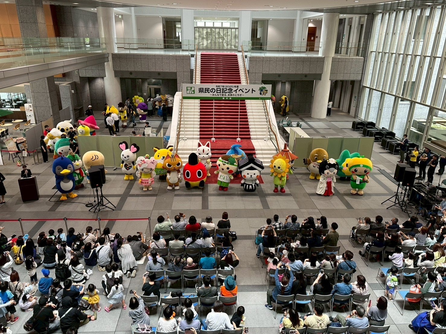 こんにちは☆ 黄ぶなが大好き”きぶなかま” お知らせ担当です♪キブナドンの故郷・宇都宮では雷様(らいさま)が ドッカーン!! と鳴り響く季節が到来!この雷が雨に溶けて土地に降り注ぐと、立派な稲の肥料になるんですよね♪大きい音と稲光にはびっくりしますが、今年も美味しい栃木のお米が育ちますように☆さて、6月15日の栃木県民の日は「令和7年度県民の日記念イベント」が栃木県庁にて開催されました。トップの画像はキブナドンがとちキャラーズステージに出動した時の様子です♪午前中はグリーティング、午後はステージで初めての事に挑戦したキブナドン。楽しみながらてくてくさせていただいた姿を、お写真と一緒に振り返ります♪本館前の広場では、朝一から色々な出し物やブースが並び盛り上がっていました♪この日、キブナドンとグリーティングされた方へプレゼントさせていただいた、てくてくシール☆本館1階の様子。開放されている場所はどこも素晴らしい賑わいでした♪キブナドン、本館1階でお待ちくださっていたきぶなかまさんの元へ出動!初めましての方にもご挨拶♪この日、キブナドンが会えた仲間たちを紹介します♪敬礼がビシッっと決まってる☆ 自衛隊栃木地方協力本部の「りくちゃん」♪いつもさりげない優しさと長靴が素敵☆ 野木町の「ひまわりサンちゃん」♪同じく野木町からやってきた、ひまわりサンちゃんの妹☆ 「のぎのん」♪老若男女に愛される日光市出身の中年ヒーロー☆ 「日光仮面」♪とも家事(家事分担&家事時間削減)を推進する「ともジカ」♪県獣の” カモシカ ” がモチーフなんですって♪楽しみがいっぱいの益子町からやってきた「マシコット」♪ 出動道中にご挨拶☆宇都宮市の妖精「ミヤリー」先輩と、小山市おもいがわ商工会応援キャラクター・小山市地域応援キャラクターの「ふうにゃ&むむにゃ」とも会えました♪ふうにゃが目の前で何か描いてくれています…。近づいて見てみると…!?!?これはびっくり!!キブナドンを描いてくれました!とっっても上手!素敵な似顔絵をありがとう、ふうにゃ〜♪おともだちに癒しと大福(大きな福)を届ける栃木市の「とち介」♪会えてキブナドンも大福ゲットだね★3月のストロベリーワールドでも一緒に遊んだね♪真岡市の「もおかぴょん」♪もおかぴょんに会えたのは、キブナドンがお仕事スーツを降りた後だったので、頭の上に乗って記念撮影してもらったんだよね☆キブナドン、ステージに出動!ずっと練習していた「とちまるくん体操」を披露しました☆みんな上手に踊っていたので是非、Xのキブナドンアカウントにアップした動画をご覧ください♪ステージの前では、可愛いキブナドン帽子でおめかしした、小さなきぶなかまさんたちが見守ってくださっていました♪可愛いー!!チームに分かれてとちまるくん人形を運ぶ「物送りゲーム」に今年も挑戦!顧問やお知らせ担当と作戦を練って頑張りました☆皆と会えた事が嬉しくて、出動を終える寸前まで名残惜しそうに会場を眺めていたキブナドン。また来年もきっと、応援に来ようね♪キブナドンに会いに来てくださった皆様、ステージを応援くださった皆様、ありがとうございます! 会場では、グリーティングへ向かう途中でキブナドンを見つけて遠くから手を振ってくださる方もいらっしゃって、とても嬉しかったです☆おかげさまでまたひとつ、ワクワクな経験をてくてくと重ねる事ができました♪今後もより一層、栃木・宇都宮の応援活動に励み、成長したキブナドンの姿をお見せ出来るよう、精進して参ります!さて!7/21(月・祝)はいよいよ「キープキャリエール感謝祭 ~ HAWAIIAN PROJECT2025 ~」にキブナドンが出動いたします☆雨天時も会場内センターハウスをメインに出動予定です!皆様是非お越しくださいね♪------------------------------------------------------~カプセルトイ「VAG郷土玩具怪獣キブナドン第二弾」元気に稼働中!~<取扱店>★栃木県宇都宮市内★・宇都宮酒造※2025年7月時点、宇都宮酒造さんにのみVAGキブナドン第一弾、第二弾両方ございます!店舗様の定休日など、事前にご確認の上、足をお運びください♪問合せ先/http://www.prestage.co.jp/------------------------------------------------------↓キブナドンの最新情報は各SNSでご覧頂けます↓XFacebookInstagram