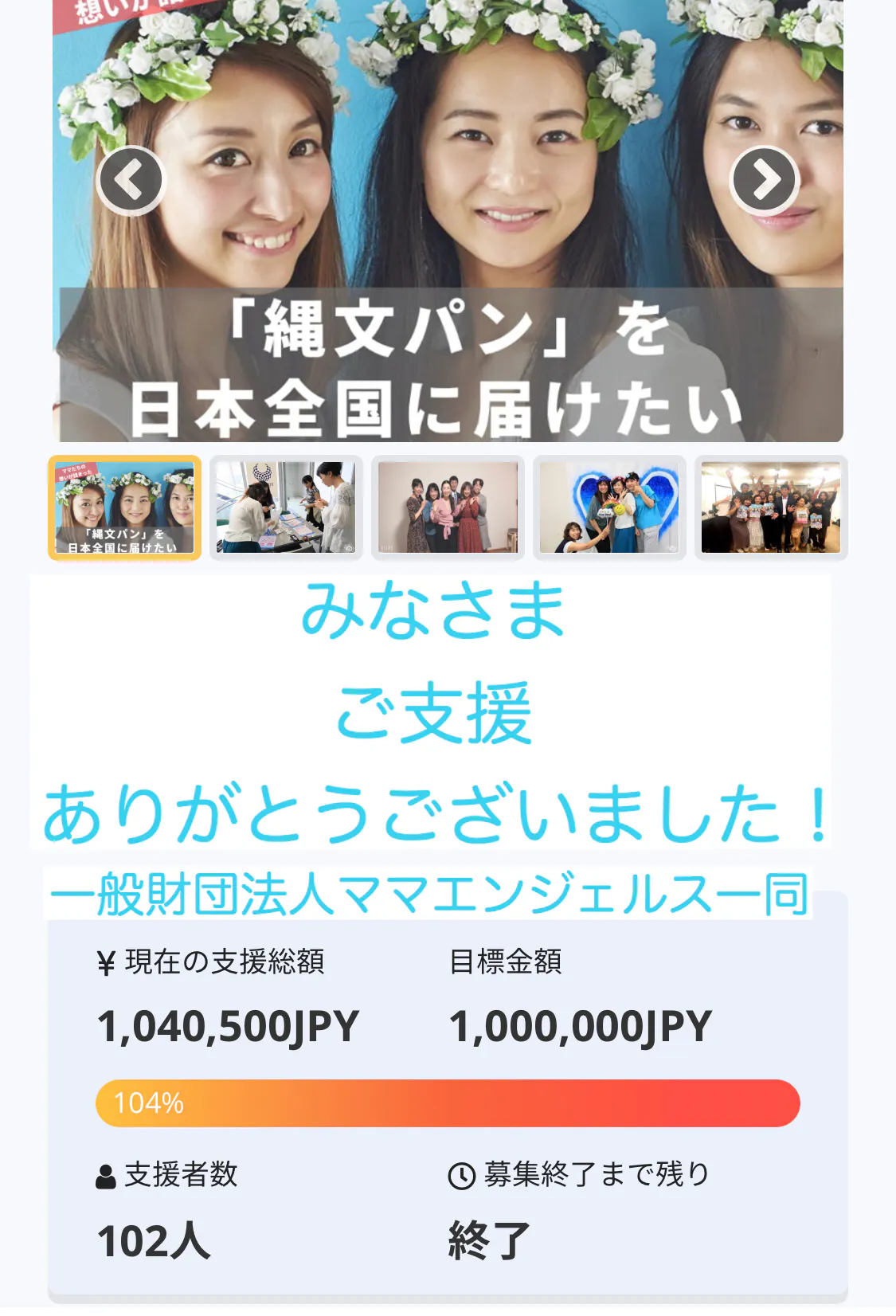 無事に目標額達成致しました。