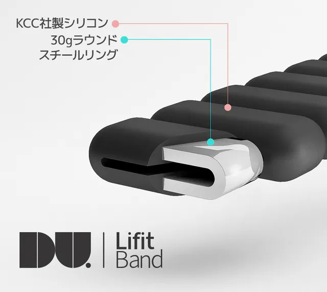 「ライフィット」はシリコンバンドをリングにはめ込むだけという手軽な着用法が特徴です。