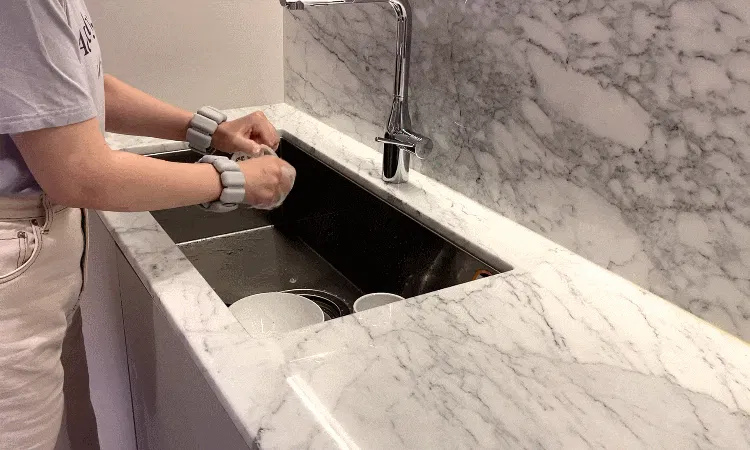 ライフィットバンドは100%防水対応の環境にやさしいシリコン材質です。食器洗いの際に着用すると、水に濡れる心配がなく、自然に腕の運動に役立ちます。