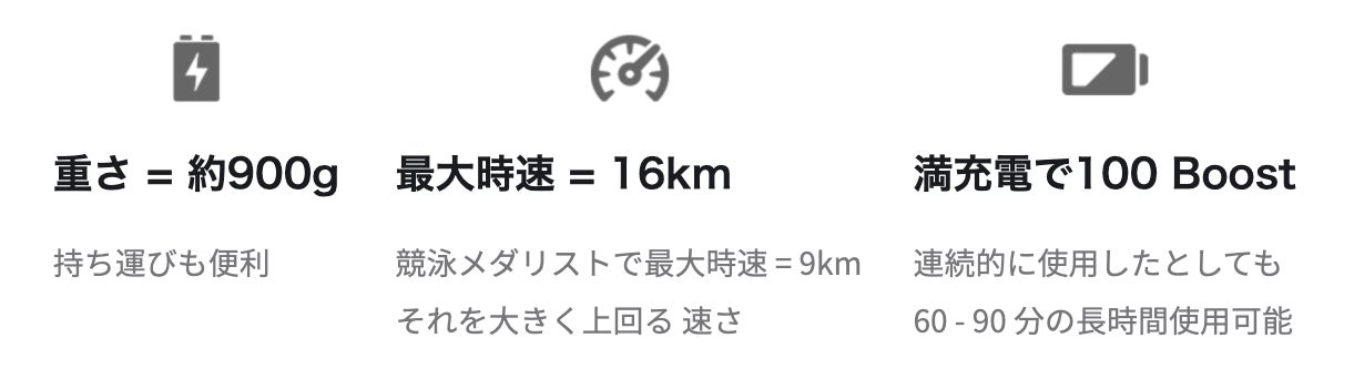 手元のボタン一つで、最大時速 = 約16km を繰り出せる電動モーター付きの最新フィンです。