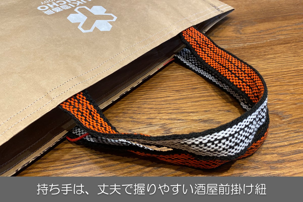 業務用お米袋をリユース資材として用い、普段のお買い物時は勿論アウトドドアシーンでも重宝する丈夫で耐久性有るオリジナルエコバッグとなります。