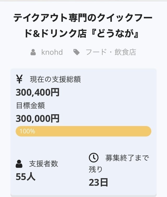 1/7に始まった当プロジェクトは、19日目となる本日無事に支援額が100%に届きました。