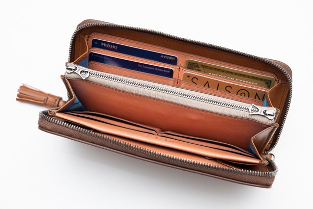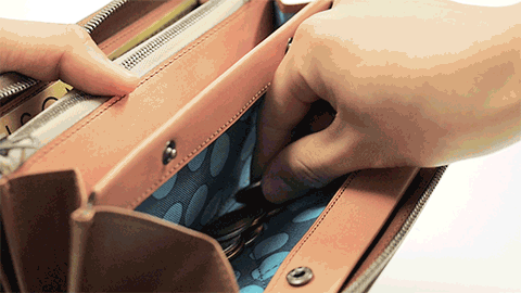 実際カードポケットに入れて頻繁に使うカードはそんなに多くありません。またポイントカードや診察券などは、見せたくないと思っている方が多いのではないでしょうか。そこで両開ファスナーの中仕切りポケット部分に増えてくるカードを収納します。