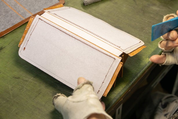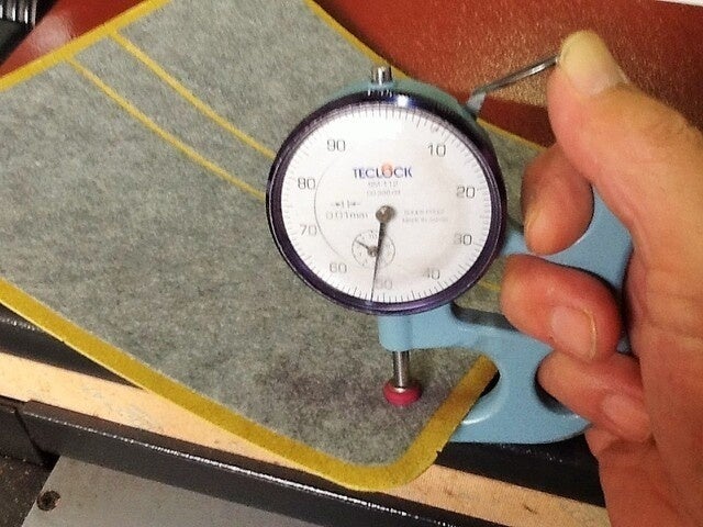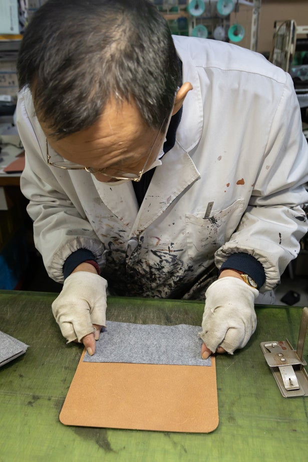 2.表側の芯材にフェルトを採用。裏処理と相まって使い込むほど手に馴染みます。フェルトを貼り込んだ後、漉き加工をし全体厚を1.5〜6mmに調整します。