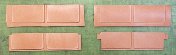 裏側になる革に薄くて強い補強芯を貼り、最後の縫製時の針穴による革切れを防ぎます