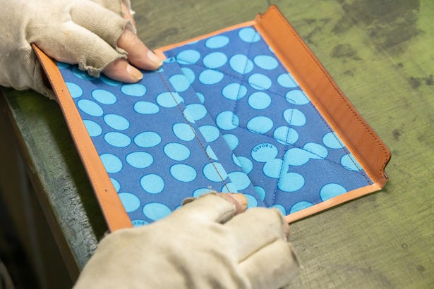 革鞄と財布などの革小物は、針や糸の太さ、革の漉き方などがかなり違い全く別の技術が求められます。約5年前から小物作りに挑戦しようと、tense“奥野”の長年の経験から来る使い勝手を考え抜いたデザインを基に、惣次郎の熟練の技術と新たに開発した手法を駆使し、サンプルとフィールドテストを繰り返しながら取り組んできました。