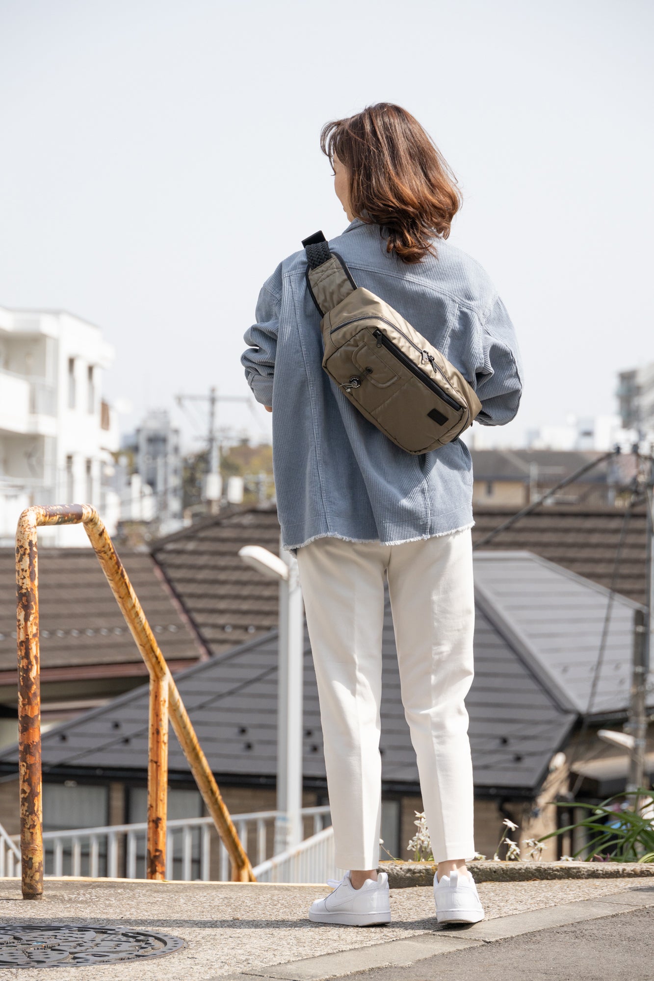 このスリングバッグも現場と話し込んで、1st.モデルより改良を重ね、現在の仕様にブラッシュアップしました。