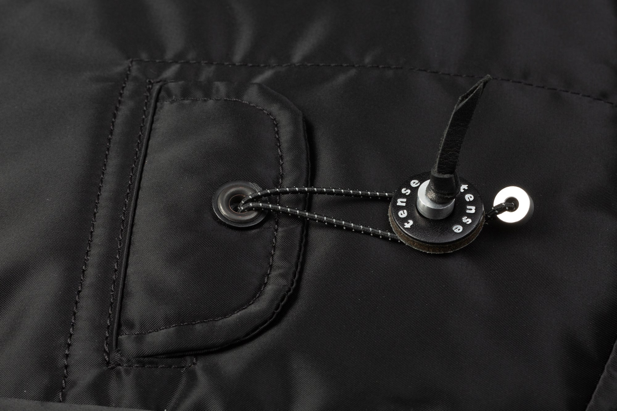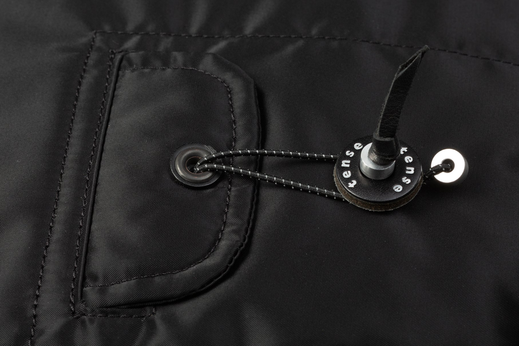 当然コストも掛かっていますが、この存在感は他には真似できない【tense】だけの逸品です。また編み込みのテープなので、テープ自体が上下左右に伸縮し、肩のラインにスッと馴染みます。