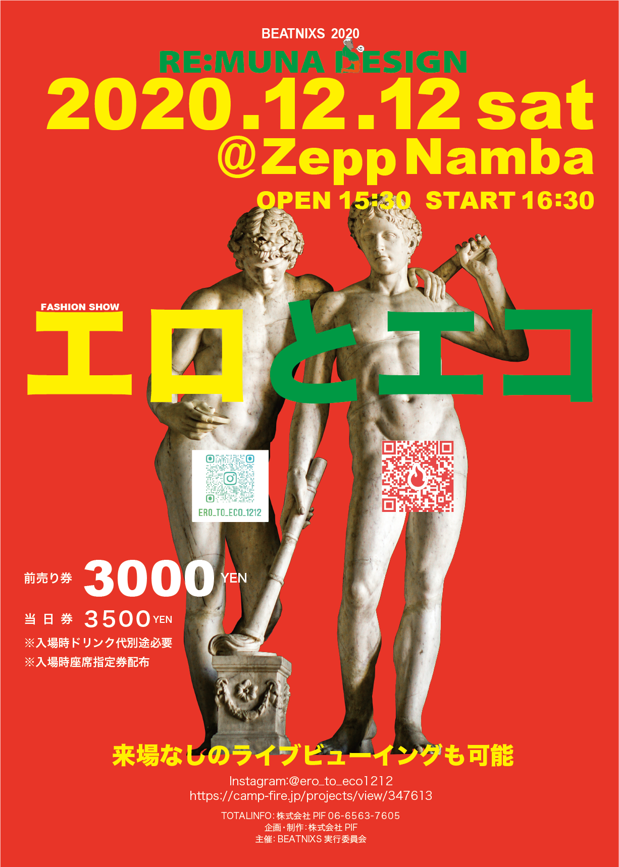 今回このクラウドファンディングでは、12/12にZeppなんばにて開催されました、エロとエコをテーマとしたファッションショーの今からでも動画を購入したいと考えていらっしゃる方向けのページとなります。