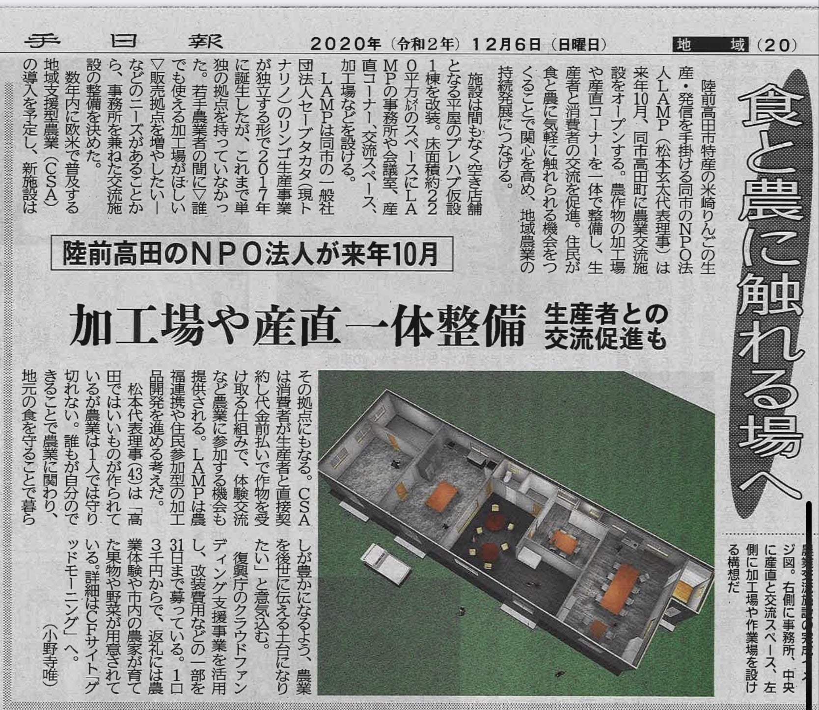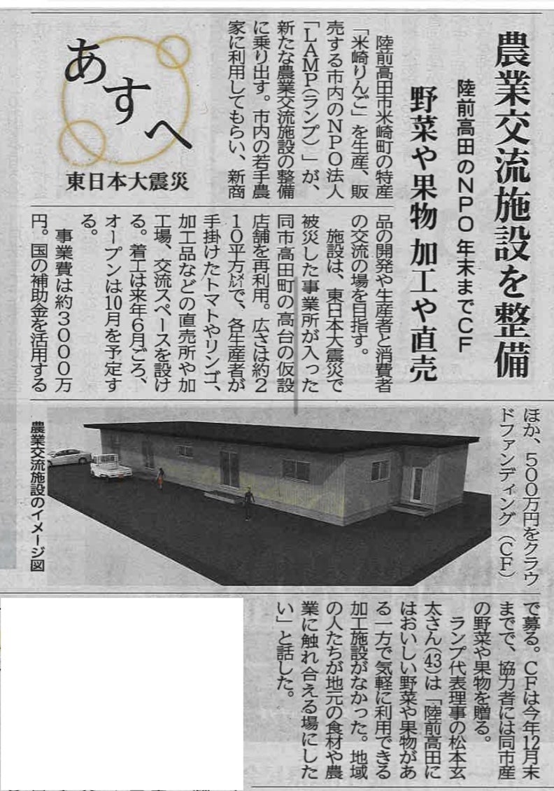 順番が前後してしまいましたが、12月3日に河北新報様に農業交流施設整備の取り組みについて掲載していただきました。ありがとうございます!!