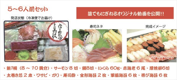 商品は冷凍便でお届けいたします。動画には解凍の仕方からにぎり寿司、軍艦、巻き寿司まで丁寧に説明してます。