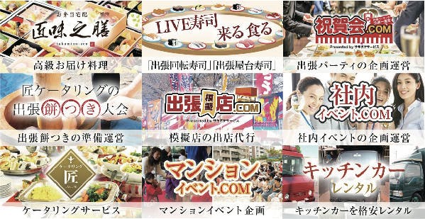 当社は地域や企業様の、フードイベントがメインで、夏祭りの出張屋台、お正月のお餅つき、老人ホームでの出張回転寿司、忘・新年会のケータリングサービスなど、お客様が驚き喜んでいただけるサービスを提供しております。出張サービスのため徹夜で移動して現場で回転寿司を行ったり、夏の屋台は猛暑の中焼きそばを焼いたり、繁忙期になりますと徹夜続きで決して楽な仕事ではございませんが、スタッフや仲間の業者さんたちはこの仕事が大好きでコロナかで先行きが見えない中でも復活を信じて必死に頑張っております。まだまだ先が見えない状況ですが、アイデアを絞って少しでも喜ばれる商品や企画を出せるよう今後も全力で取り組んでいこうと思っております。