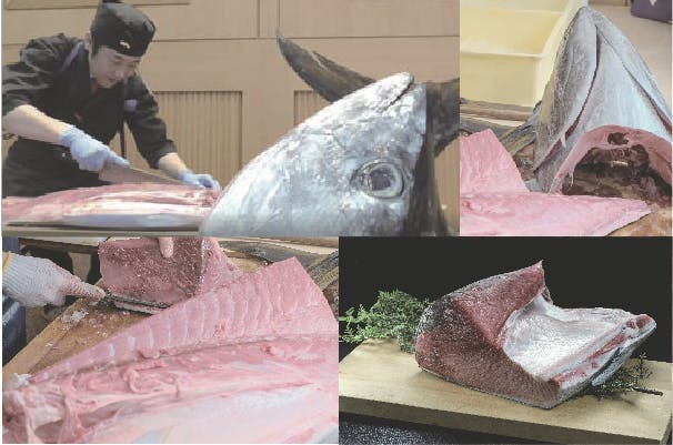 ①実際にお届けしますマグロの解体シーンをLIVEで見ていただける。