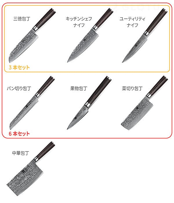 ダマスカス包丁6本セット
