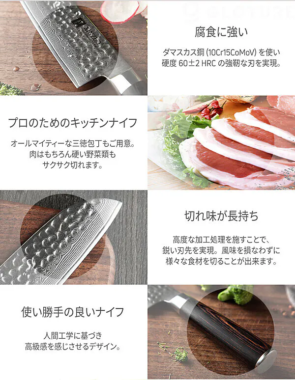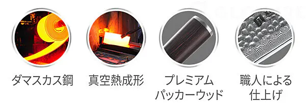 ・刃は高級 67層ダマスカス鋼!真空熱処理で一生ものの強度を実現!