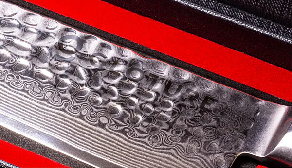 刃には、日本刀と並んで評価されている高級67層ダマスカス鋼(10Cr15CoMoV)を使用。