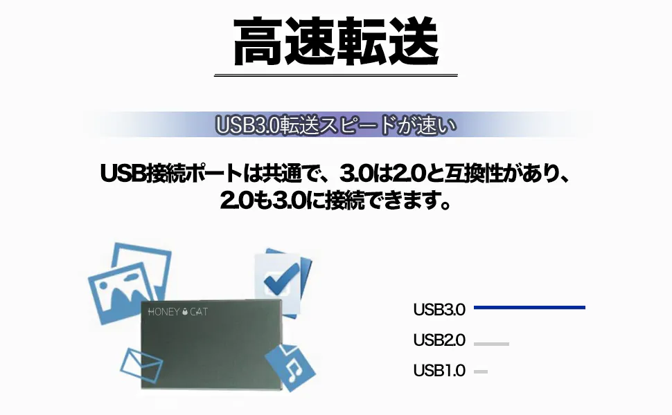 ▲USB3.0対応 5400PRのスピード 大容量のムービーや写真などの多くのデータを読み書きが可能です。