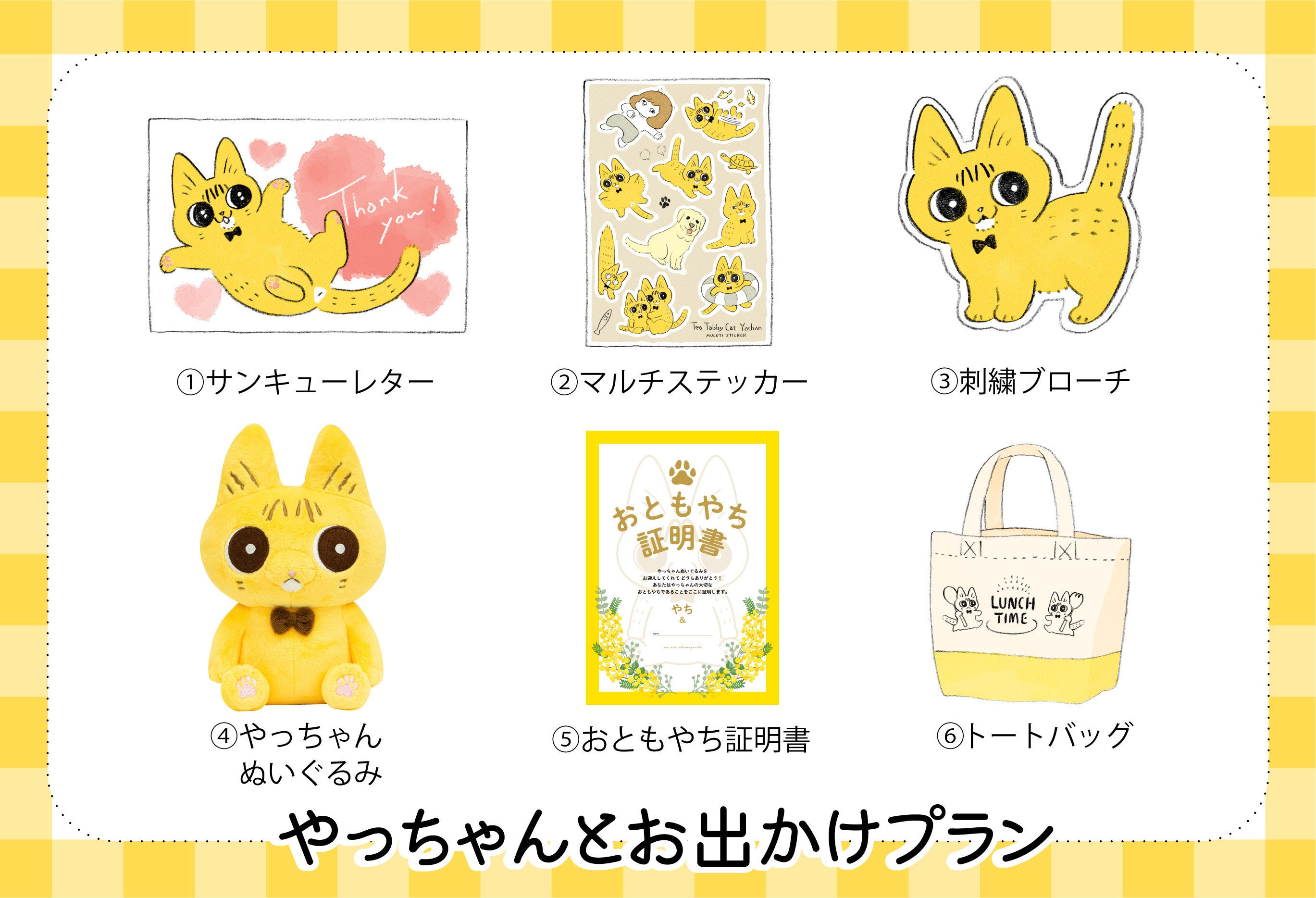 やっちゃんぬいぐるみに加え、クラウドファンディング限定のやっちゃんグッズをリターンでお届けします。ぬいぐるみも入るランチトートがついた盛り沢山なプランとなっております!!