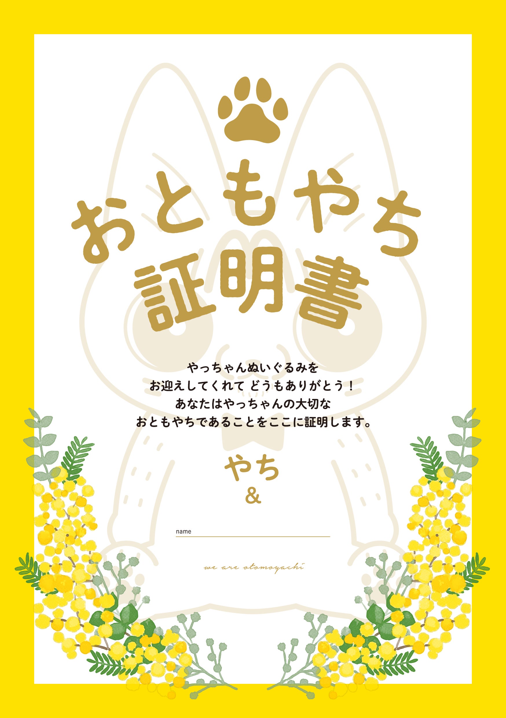 「やっちゃんぬいぐるみ」のついてくるコースをご支援のみなさまに、類さん描き下ろしの「おともやち証明書」をお届けします!!