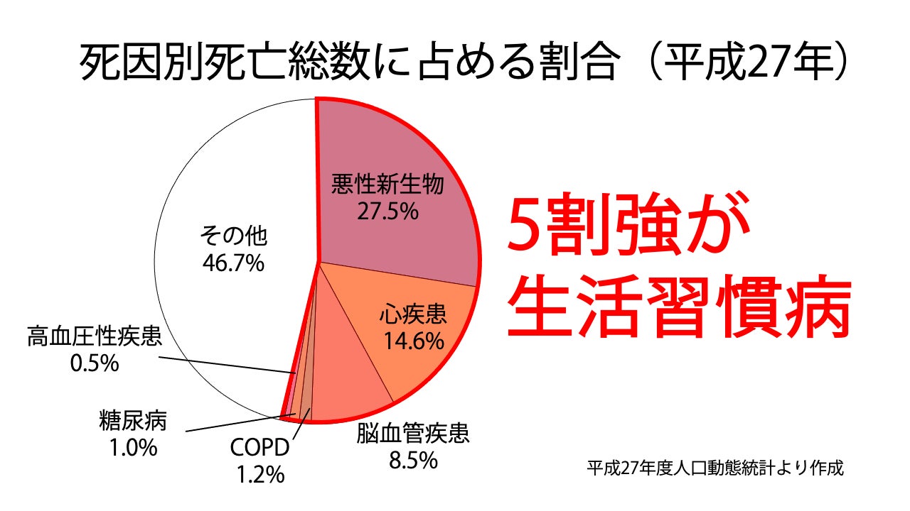 現在、日本人の死亡原因の半分以上は生活習慣病であり、日々の食事が密接に関わっています。
