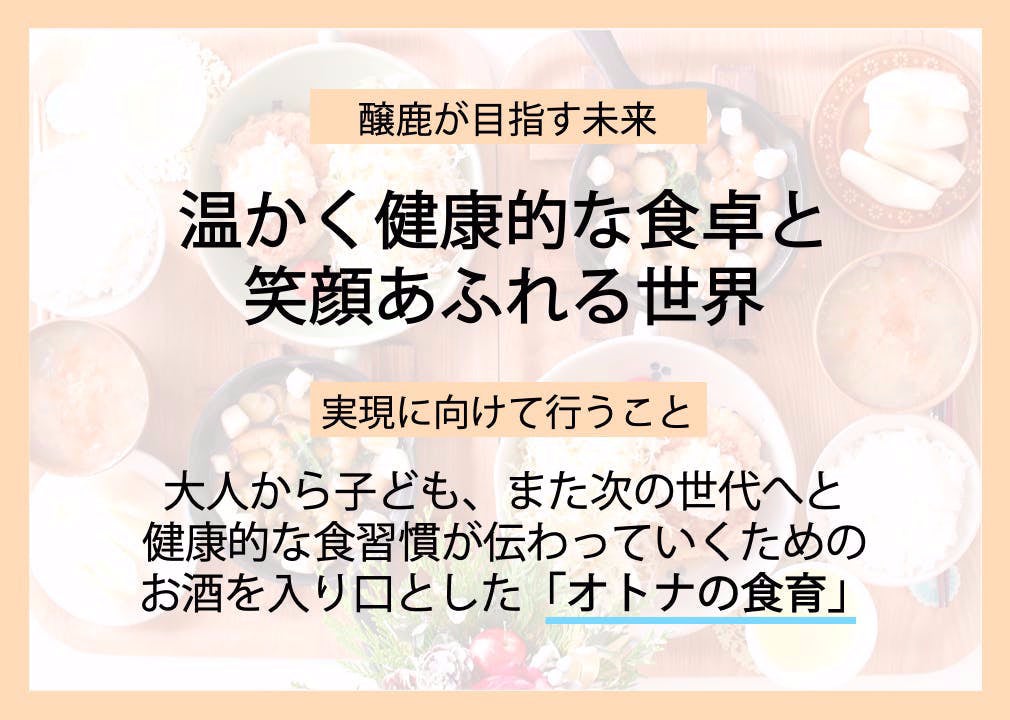 醸鹿は今後とも「オトナの食育」を続け、大人が楽しみながら健康的な食習慣を身につけることで、