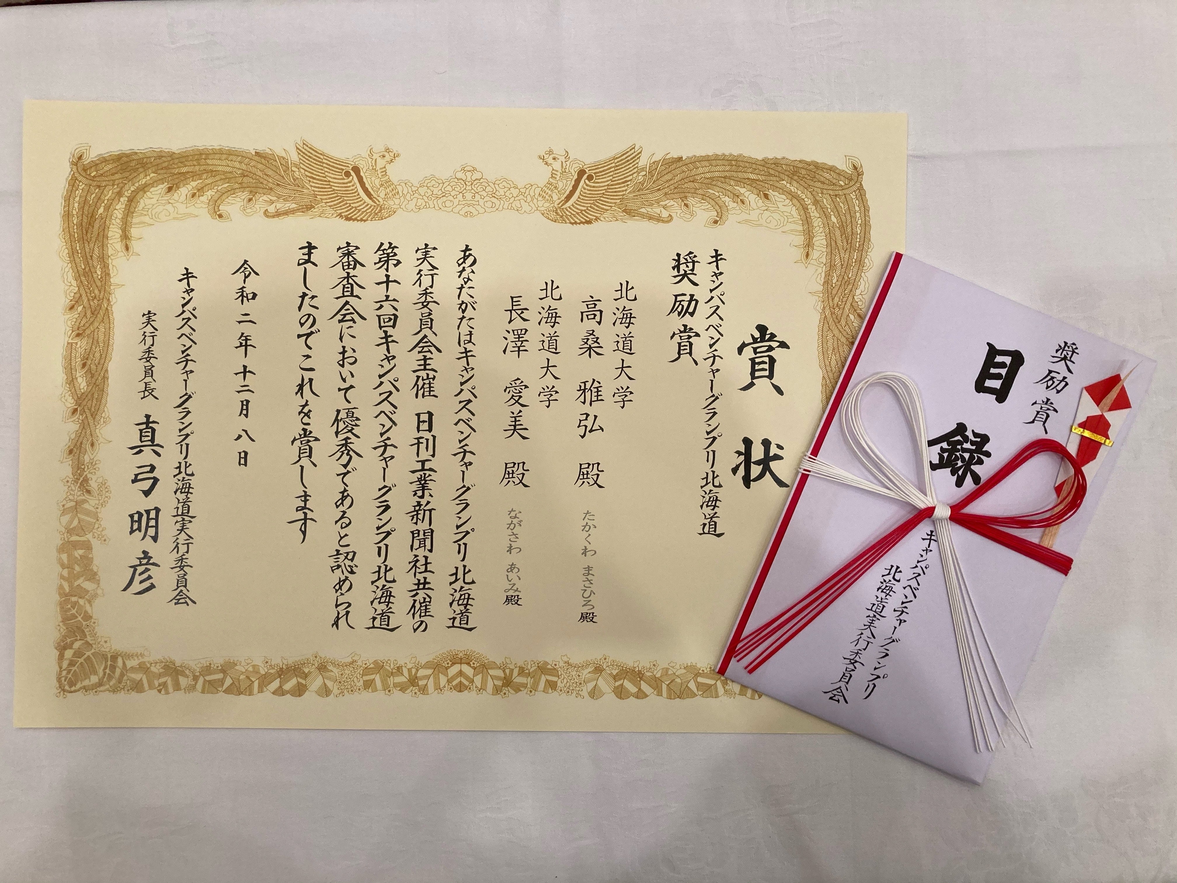 昨日12月8日(火)に行われた「キャンパスベンチャーグランプリ北海道大会」で、"緒"が奨励賞を受賞しました。