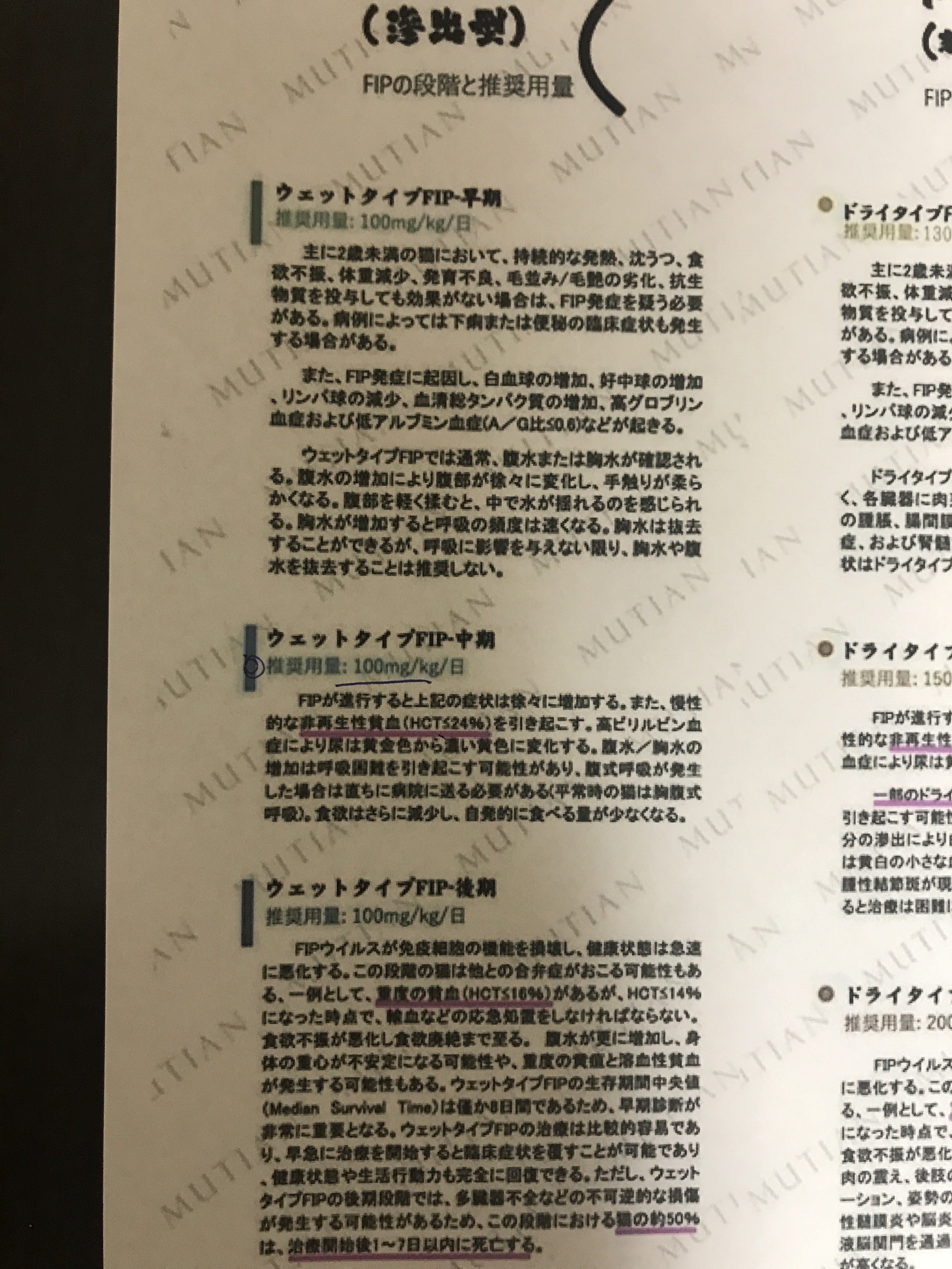 この海外薬は日本において動物医療品として承認されておりません。飼い主として個人的な自己責任と判断で投薬しています。全てのFIPを発症した猫ちゃんに有効であるという趣旨ではございません。