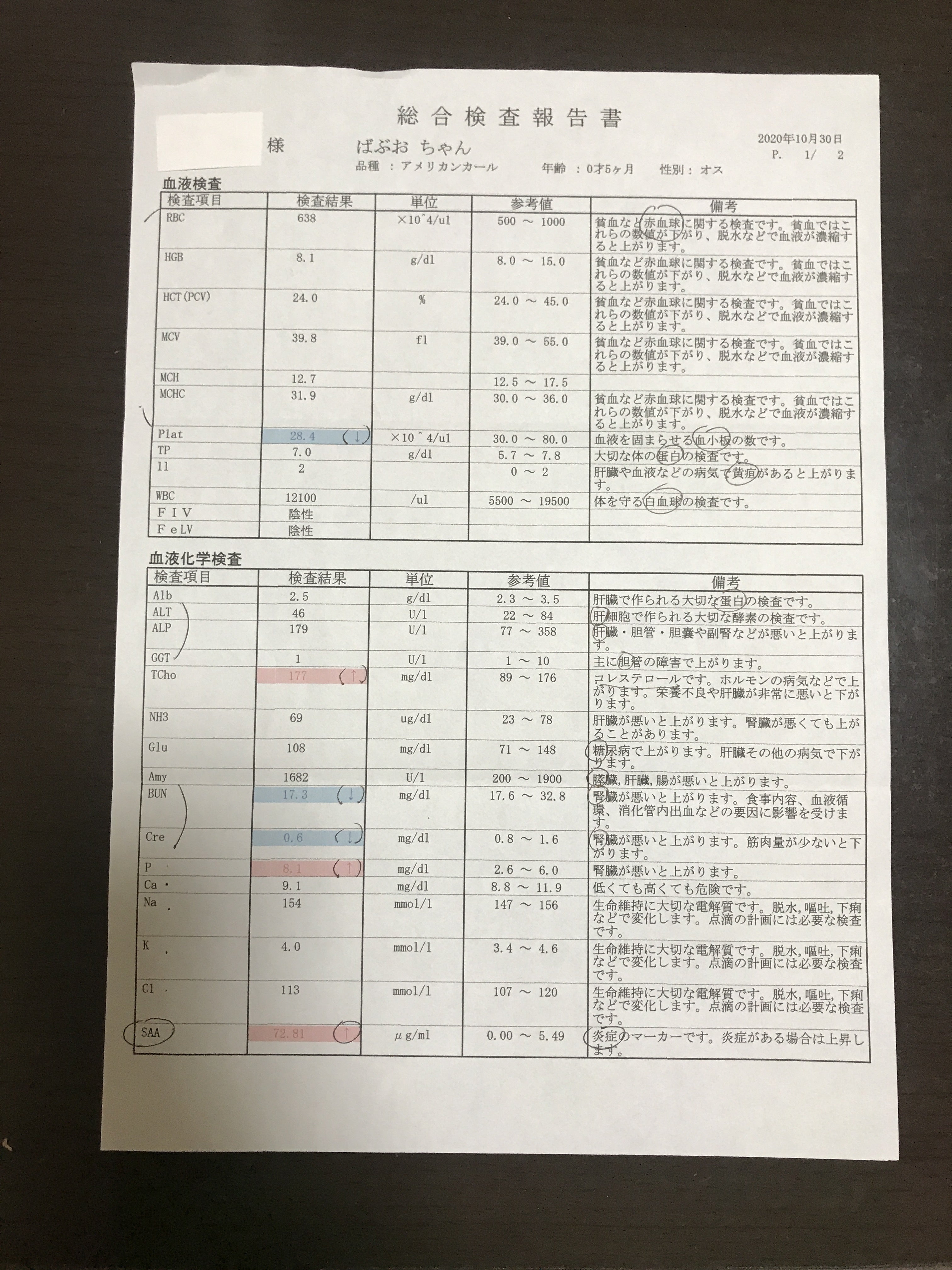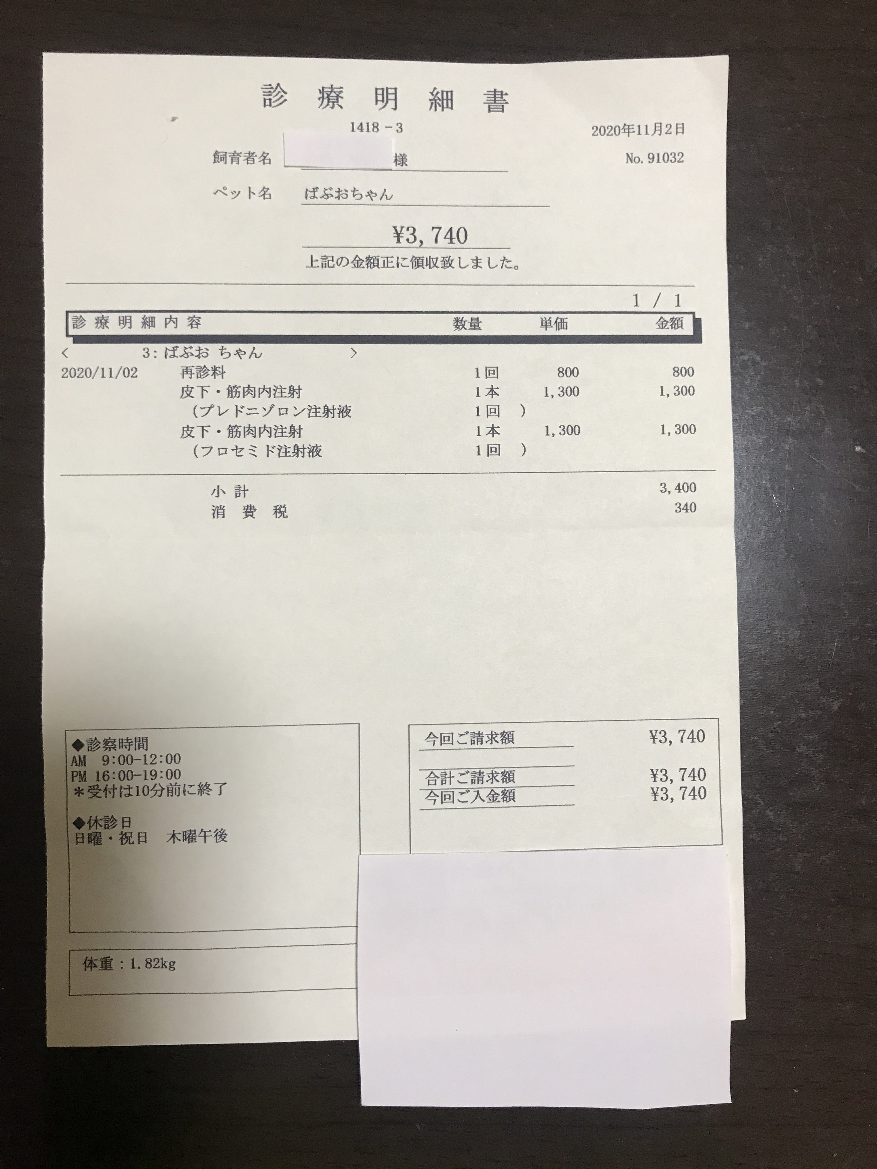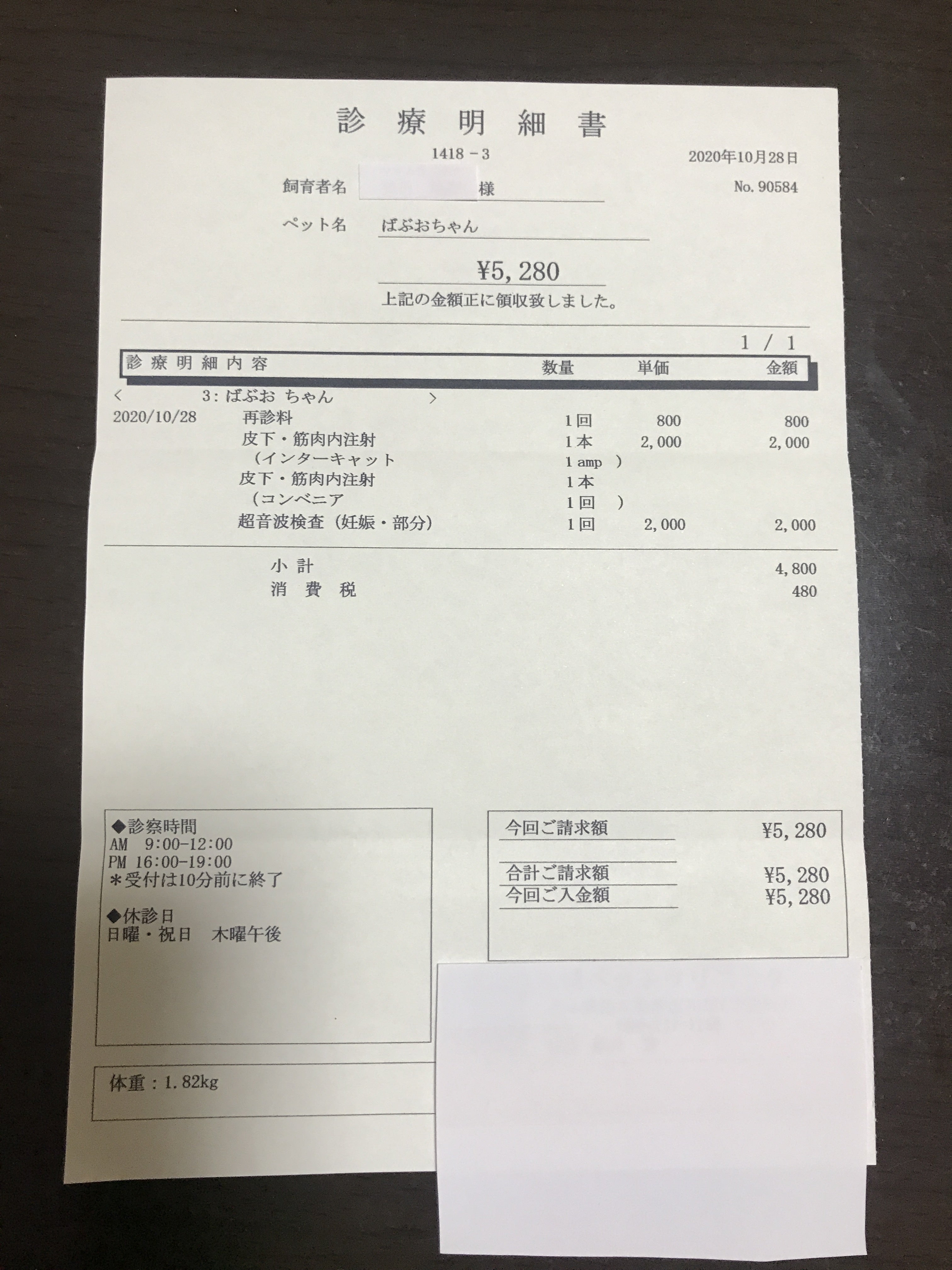 元々食が細かったのですが、少しずつ食べるようになり体重も増えていたので風邪が長引いているものだと思っていました。この日は注射を打ってもらい、1週間後に経過を見せに来て下さいとの事でした。