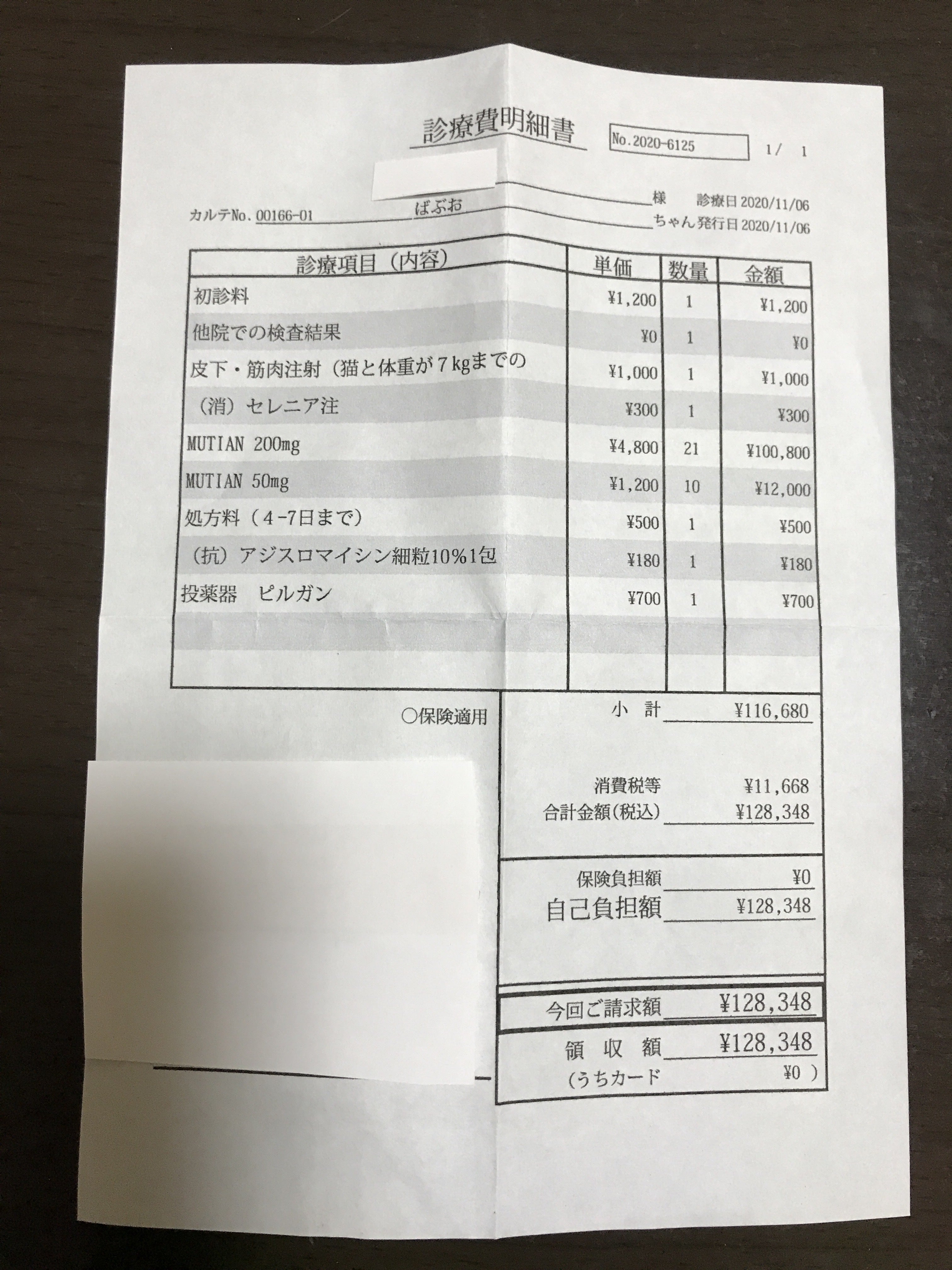 その中で日本では未認可の新薬がFIPの治療に効果があるという事を知りました。さらに日本では協力病院が少なく、未認可のため保険も適用出来ず高額になる事も。でもこのまま対処治療をやっても良くなる可能性は低いし、その度にばぶおへの負担にもなる。それならこの新薬にかけよう!!と決心し、11月4日に協力病院へ連絡を入れ、6日協力病院まで片道6時間かけて出発しました。