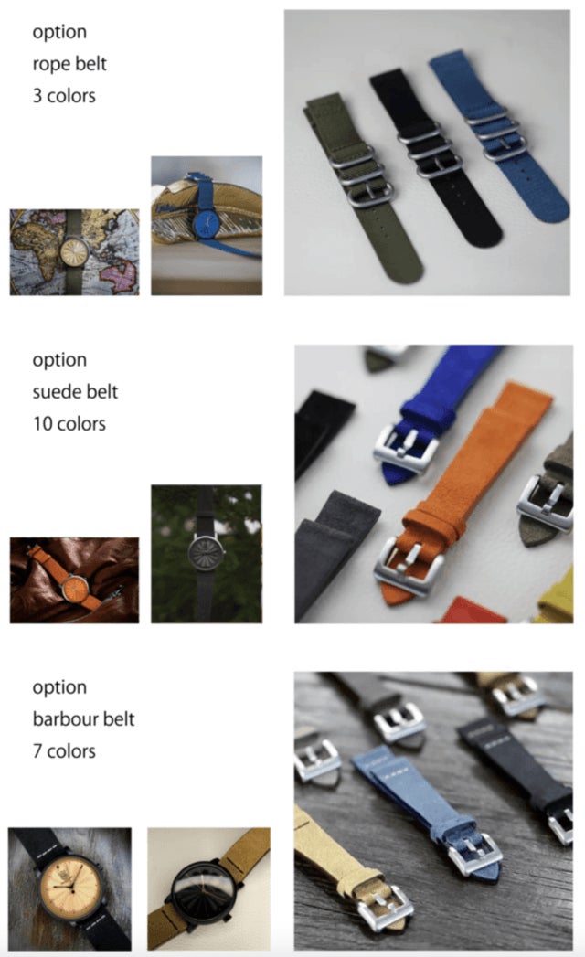 2021/06/12 12:54ページをご覧の皆様お世話になります、from TR/棚原です。続けての投稿失礼致します。お色味の選択につきまして、同様の質問をいくつか頂いておりますので、改めて以下の通りにご説明させて頂きます。<ベゼル(時計の縁)について>シルバーとブラック(DLC加工)の二色をご用意しております。デフォルトカラーは全てシルバーとなっており、オプションのDLC加工を追加ご支援頂いた場合のみ、ブラックとなります。<フェイス(時計の文字盤)カラーについて>以下の10色をご用意しております。*ご支援時にお選び頂けるようになっております。ホワイトブラックブルーイエローターコイズミリタリーグリーンサーモンピンクオレンジレッドグレー<ベルト(ストラップ)について>以下の3種類をご用意しており、それぞれのストラップ毎にご支援ボタンがございますのでお選びください。Rope(ロープ)Suede(スウェード)Barbour(ご支援の例)①ロープストラップ/シルバーベゼル/ミリタリーグリーンフェイスの商品をご支援いただく場合 - 割引率の高い【SBW rope strap】をお選び頂く。↓ - カラーでミリタリーグリーンをお選び頂く。↓ - お好みのストラップカラーをお選び頂く。②スウェードストラップ/ブラックベゼル/オレンジフェイスの商品をご支援いただく場合 - 割引率の高い【SBW suede strap】をお選び頂く。↓ - カラーでオレンジをお選び頂く。↓ - お好みのストラップカラーをお選び頂く。↓ - 追加でDLC加工(¥2,500)をご支援頂く。ご検討お願い申し上げます。 もっと見る【400通りのカスタマイズ】ご紹介