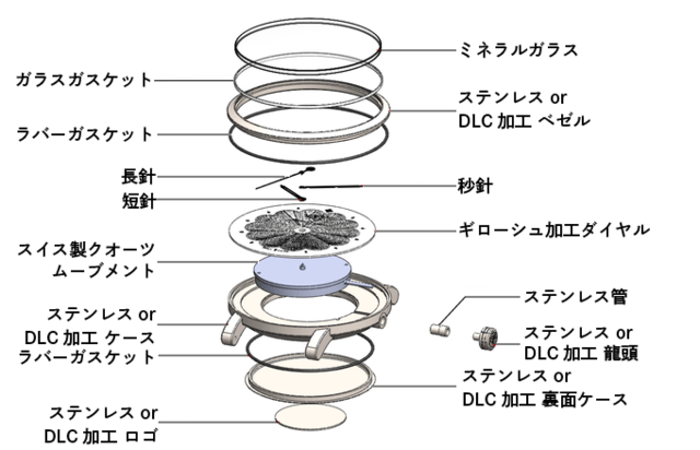 ブラック色のベゼルをご希望の方はオプションのDLC加工をご購入ください。