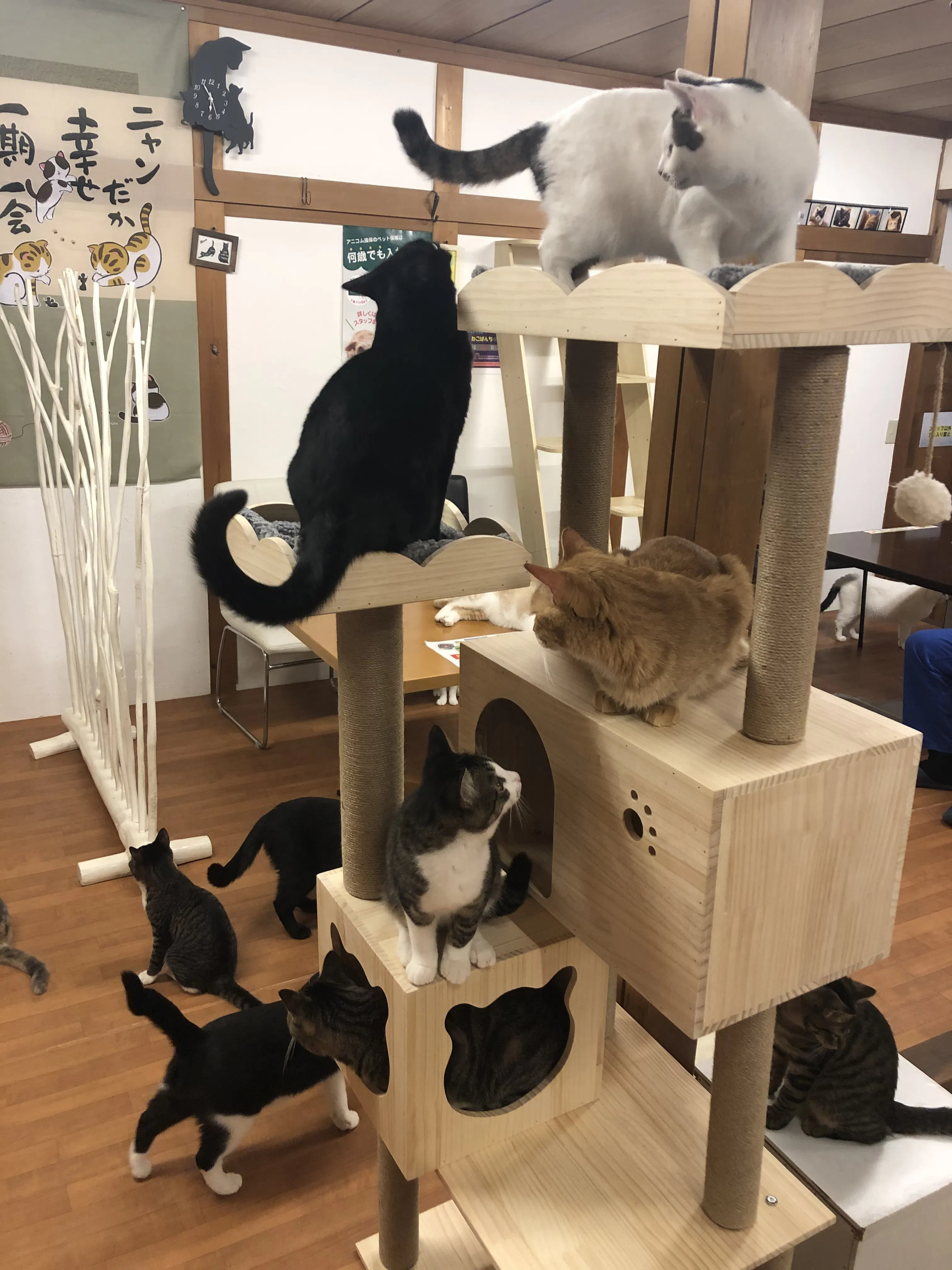 こうして、キャットタワーをいただけると、隠れたり、上に登ったりでいろいろな猫達がストレスなしで暮らしてくれます!